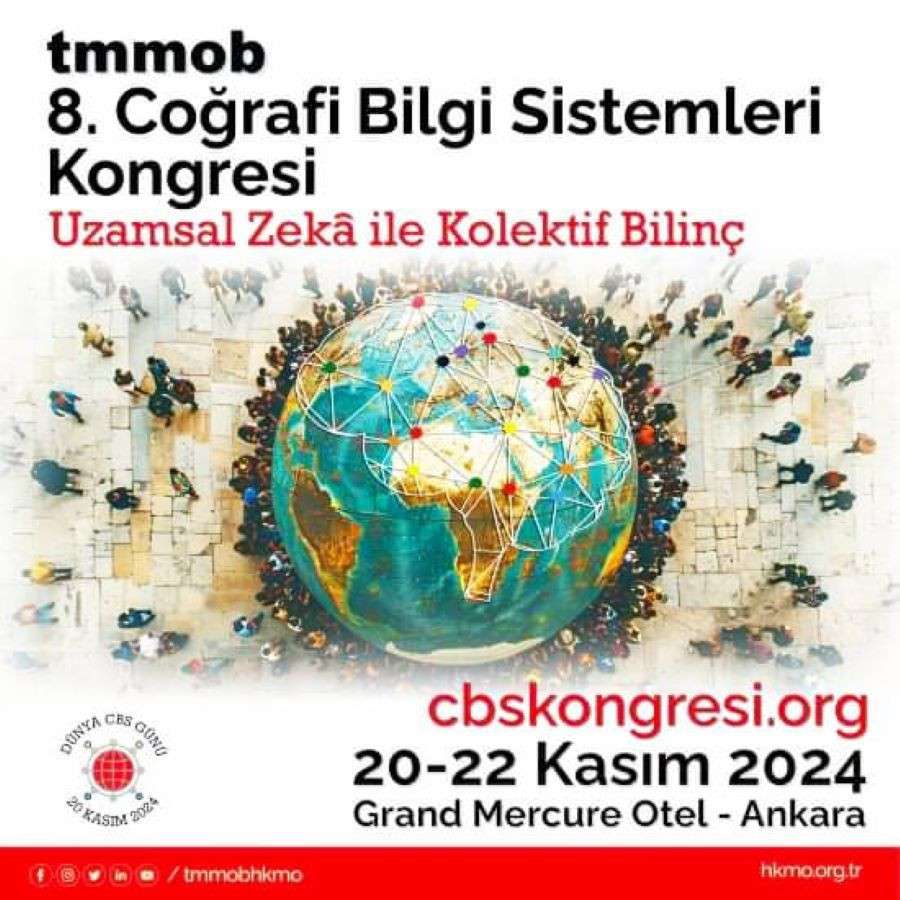 Halim UTLU / "Uzamsal Zekâ ile Kolektif Bilinç" ana konusuyla, 20 - 22 Kasım 2024 tarihleri arasında, TMMOB Harita ve Kadastro Mühendisleri Odası tarafından düzenlenen Coğrafi Bilgi Sistemleri kongrelerinin 8.incisi, Ankara Grand Mercury Otel'de bugün başlıyor.