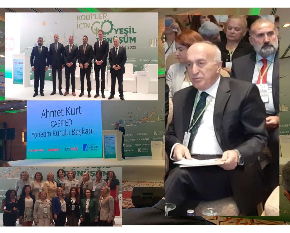 ‘Yeşil Kalkınma Devrimi ve 2053 Net Sıfır Emisyon’ hedefinin bir devlet politikası olması gerektiğini ve günümüzde hayati bir önem kazandığını vurgulayan İÇASİFED Yönetim Kurulu Başkanı Ahmet Kurt, “Dünya ile birlikte ülkemiz de 'Yeşil Dönüşüm' başlığı altında yeni bir üretim modelini konuşmaya, bunun gereklerini yerine getirmeye başladı. Üretimin, istihdamın, ihracatın yükünü sırtlamış olan KOBİ’lerimiz de yeşil dönüşümü giderek daha fazla önemsiyor” dedi.