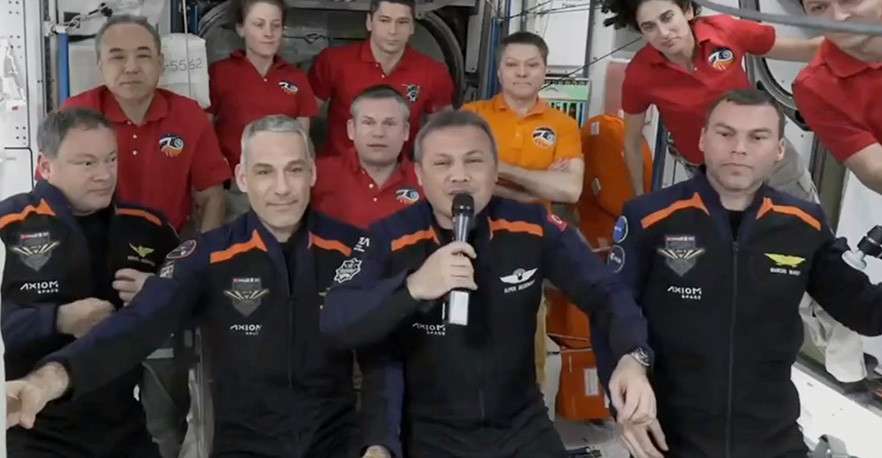 Alper Gezeravcı, ISS'e adım atarak Türkiye'nin gururunu taçlandırdı. Uzay istasyonunda düzenlenen karşılama töreninde konuşan Gezeravcı, "Türkiye Cumhuriyeti'ni kurarak bizlere emanet eden Gazi Mustafa Kemal Atatürk ve silah arkadaşlarına, bu vatan için canlarını veren tüm şehitlerimize, buraya adım atmamızı sağlayan devletimize ve bu imkanları bize sunan milletimize şükranlarımı sunuyorum. İstikbal göklerdedir" dedi.
