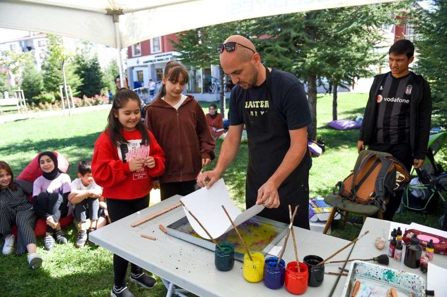 Sanatın her dalıyla ilgilenen Altındağlı çocuklar, yeteneklerini gözler önüne serdi. Altındağlı çocuklar, “Ebru” yaptı.