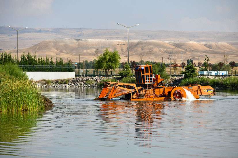 Ankara Büyükşehir Belediyesi ANFA Genel Müdürlüğü, Başkent genelinde bulunan baraj, göl ve göletlerde oluşan yosunları, kirli atıkları ve çöpleri “Göl İçi Bitki Temizleme (Hasat) Makinesi” ile temizleyerek suyu hem kötü kokulardan arındırıyor hem de daha berrak görünmesini sağlıyor.