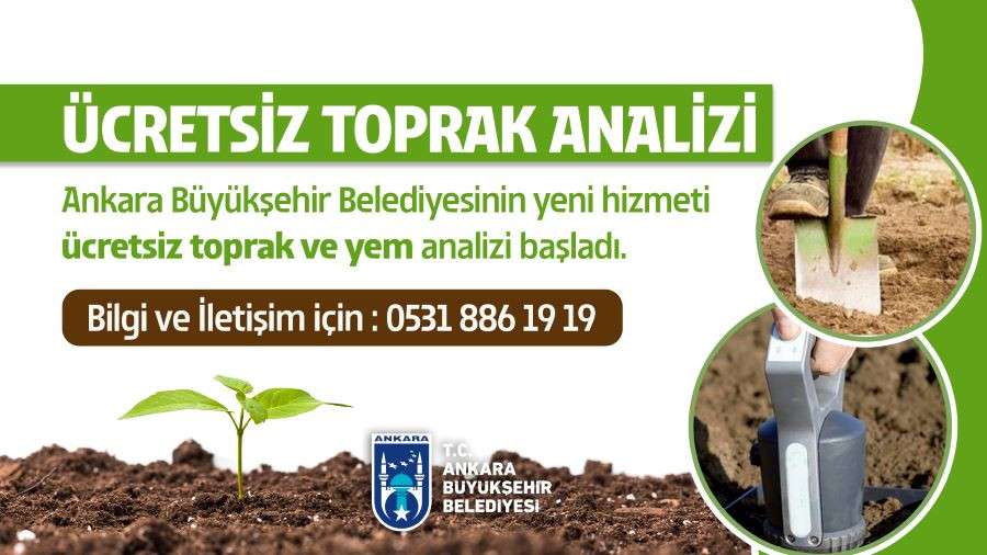 Ankara Büyükşehir Belediyesi, hem Başkentte tarım ve hayvancılıkta üretim ve kaliteyi artırmak hem de çiftçileri bilinçlendirmek için ücretsiz yem ve toprak analizi hizmeti vermeye başladı. Toprak ve yem analizi yaptırmak isteyen yerli üreticiler 0544 374 45 94 numaralı telefon ile iletişime geçebilecek.