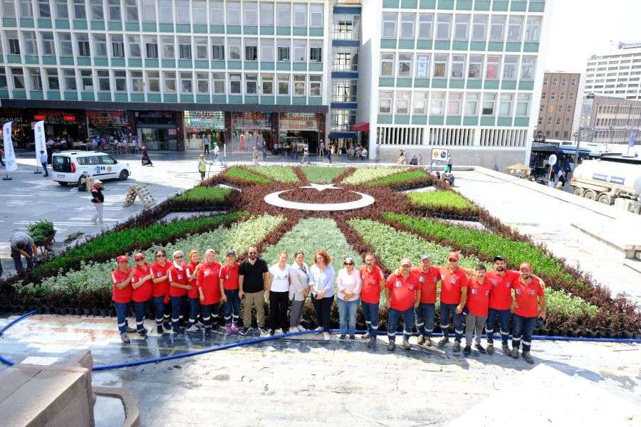 Ulus Atatürk Heykeli çevresinde 310 metrekarelik bir alanda Beypazarı serasında yetiştirilen 9 bin 500 saksılı bitki ile peyzaj çalışması yapıldı. Bitkilerin merkez noktasına yerleştirilen ve led aydınlatma ile donatılan 9 metrekarelik ay-yıldız, Ulus’un kalbinde görsel bir şölen yaşatıyor.