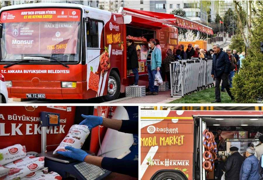 Ankara Halk Ekmek Fabrikası tarafından, zorlu ekonomik koşullarda vatandaşın bütçesine destek olmak için başlatılan uygun fiyatlı et satışı Ramazan ayında da devam ediyor. Mobil market bu hafta; Evren, Şereflikoçhisar, Balâ, Etimesgut, Çayırhan, Çubuk, Akyurt, Kalecik ve Pursaklar ilçelerinde olacak.