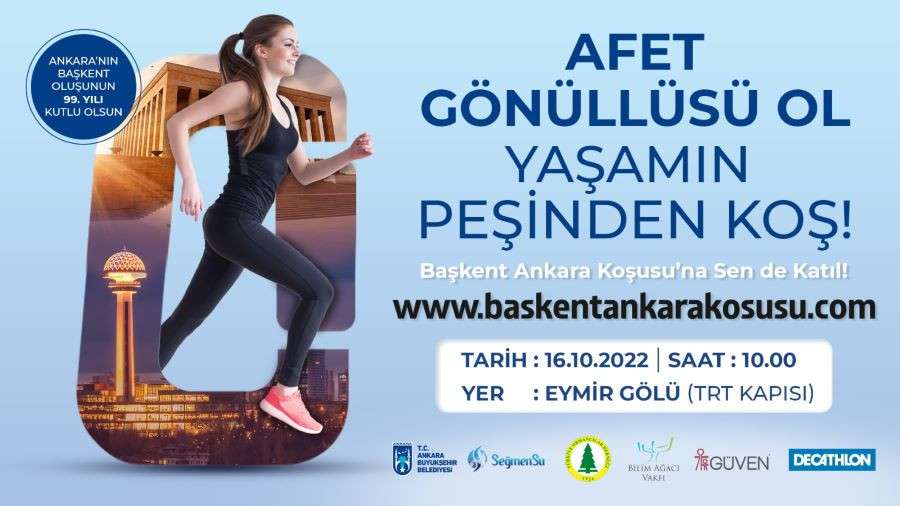 Ankara, Başkent oluşunun 99. yılı anısına düzenlenecek ‘Başkent Ankara Koşusu’na ev sahipliği yapmaya hazırlanıyor. Bu yıl ilk kez düzenlenecek koşu, 16 Ekim 2022 Pazar günü Eymir Gölü’nde gerçekleştirilecek. ‘Afet Gönüllüsü Ol Yaşamın Peşinden Koş’ sloganıyla düzenlenecek koşuya katılmak isteyenler Ankaralılar, www.baskentankarakosusu.com başvuruda bulunabilecek.