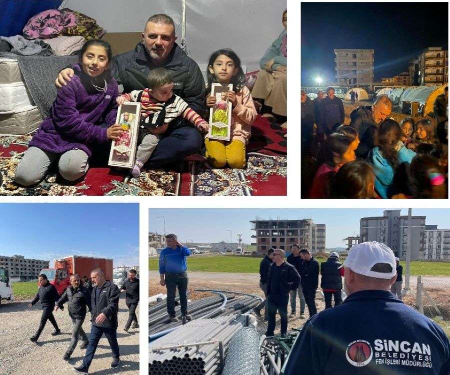 Sincan Belediyesi günlerdir deprem bölgesinde yaraları sarmak için çalışmalarına devam ediyor. Adıyaman’da 200 konteynerden oluşan konteyner kent çalışmalarını hızlandırdı. Sincan Belediye Başkanı Murat Ercan da bölgede çalışmaları yakından takip ediyor. Depremzede aileleri de sık sık ziyaret eden Başkan Ercan çocukların da yüzünü güldürdü.