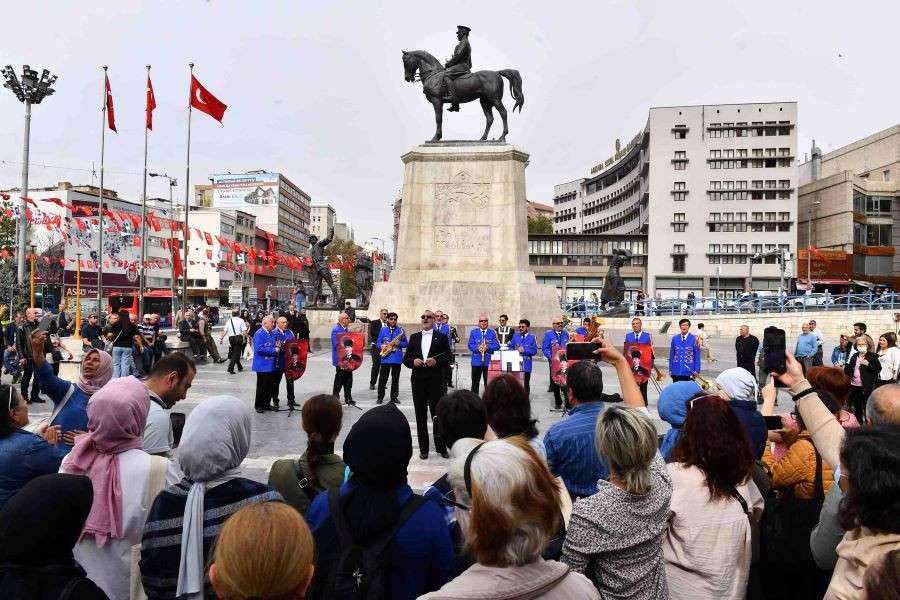 Cumhuriyetin kuruluş yıl dönümü kutlamaları için Başkentin Cadde ve bulvarlarını kırmızı beyaza boyayan Büyükşehir Belediyesi, düzenlediği kent orkestrası konserleri ile bando ve mehter takımları gösterileriyle vatandaşlarla bir araya geliyor.