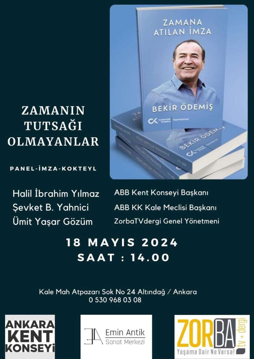 ABB Kültür ve Tabiat Varlıkları Daire Başkanı Bekir Ödemiş, “Zamanın Tutsağı Olmayanlar” panelinde “Zamana Atılan İmza” kitabını okurları için imzalayacak.