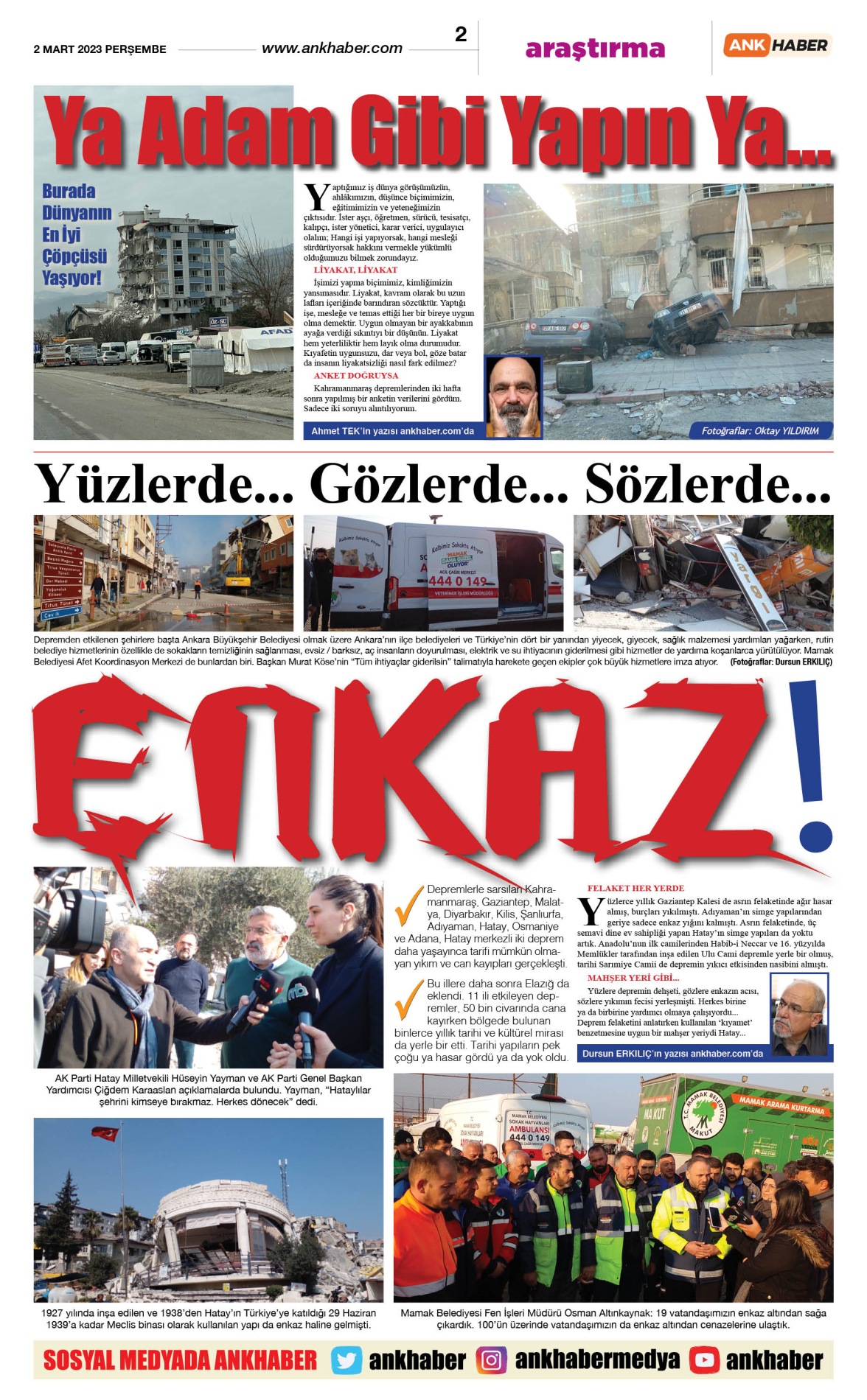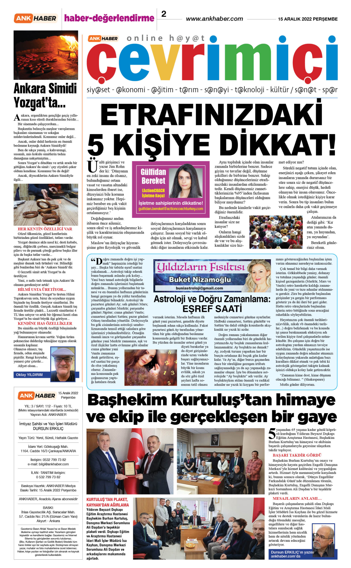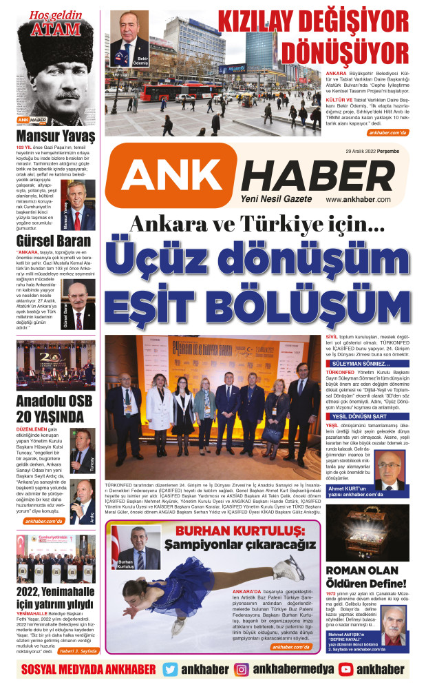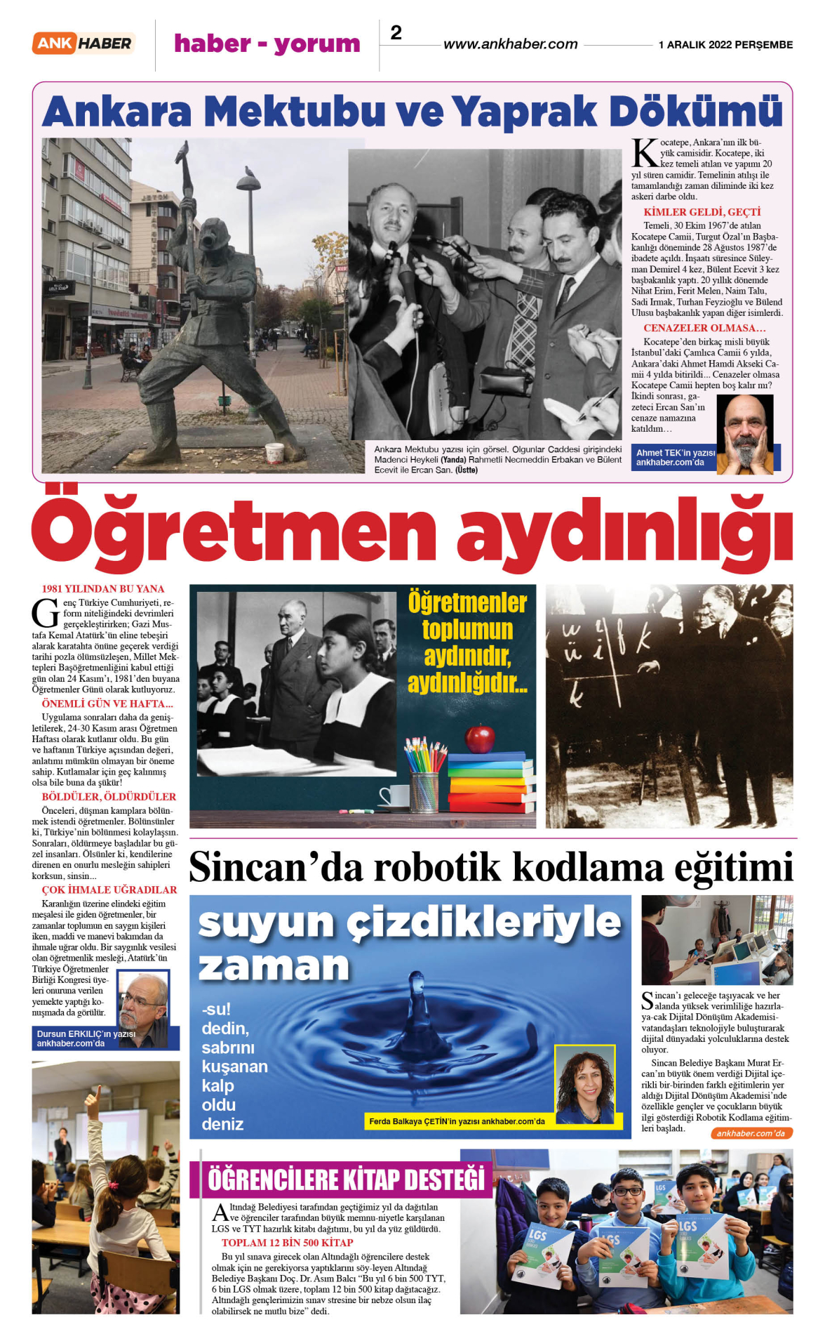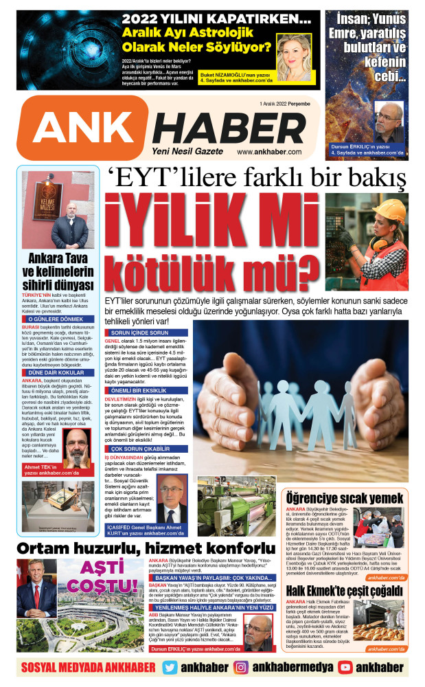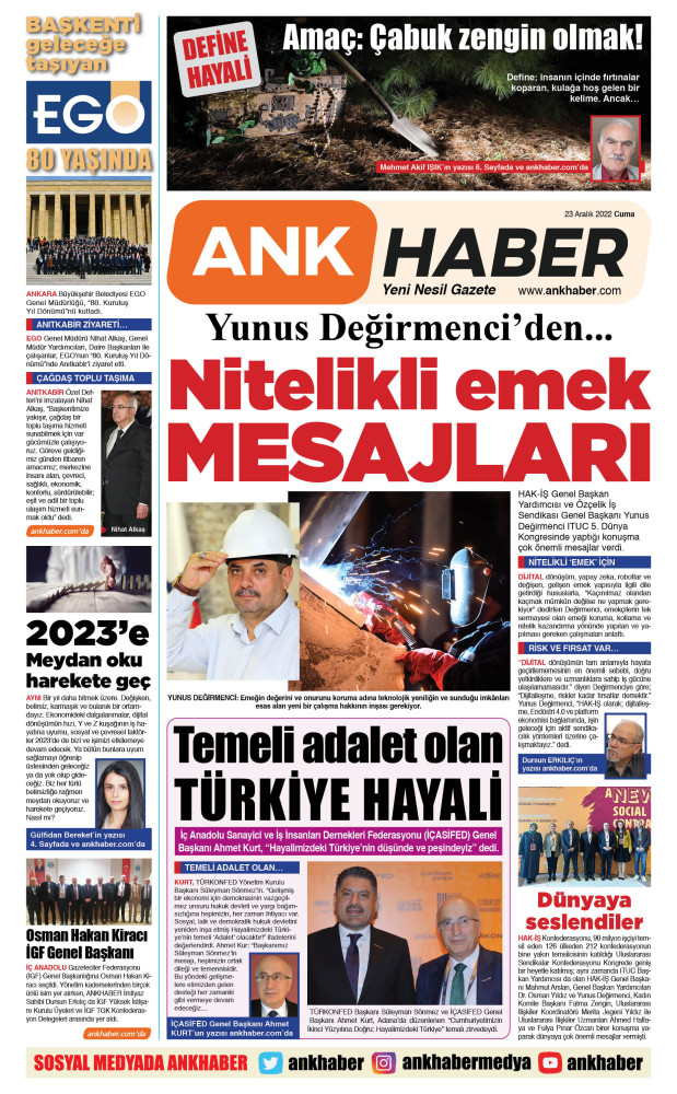 Basılı dağıtımı PTT aracılığıyla yapılan ANKHABER Gazetesi’nin 49. sayısı internet sitesinde dijital olarak yayında…