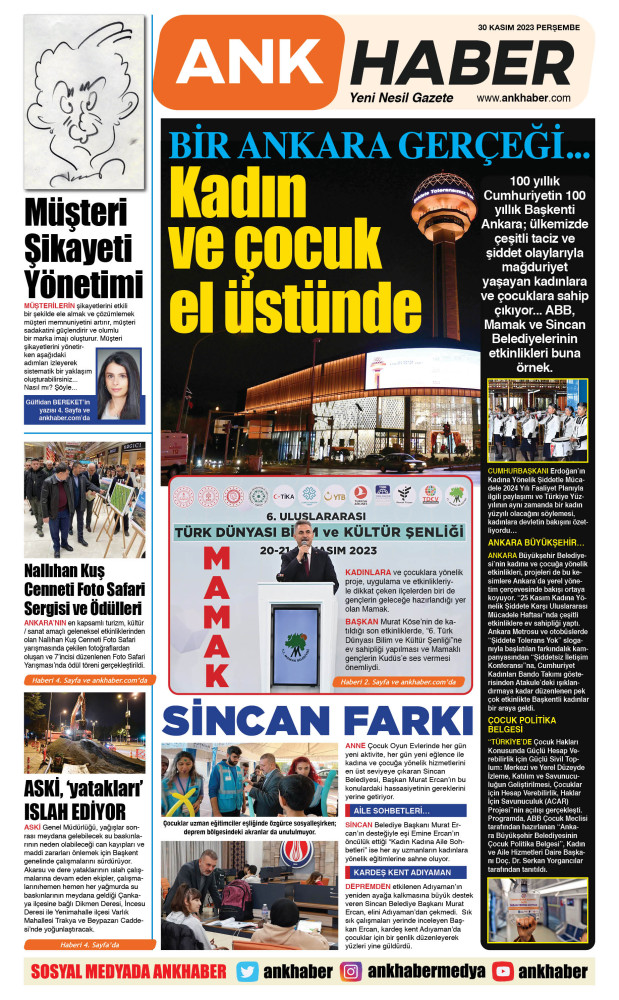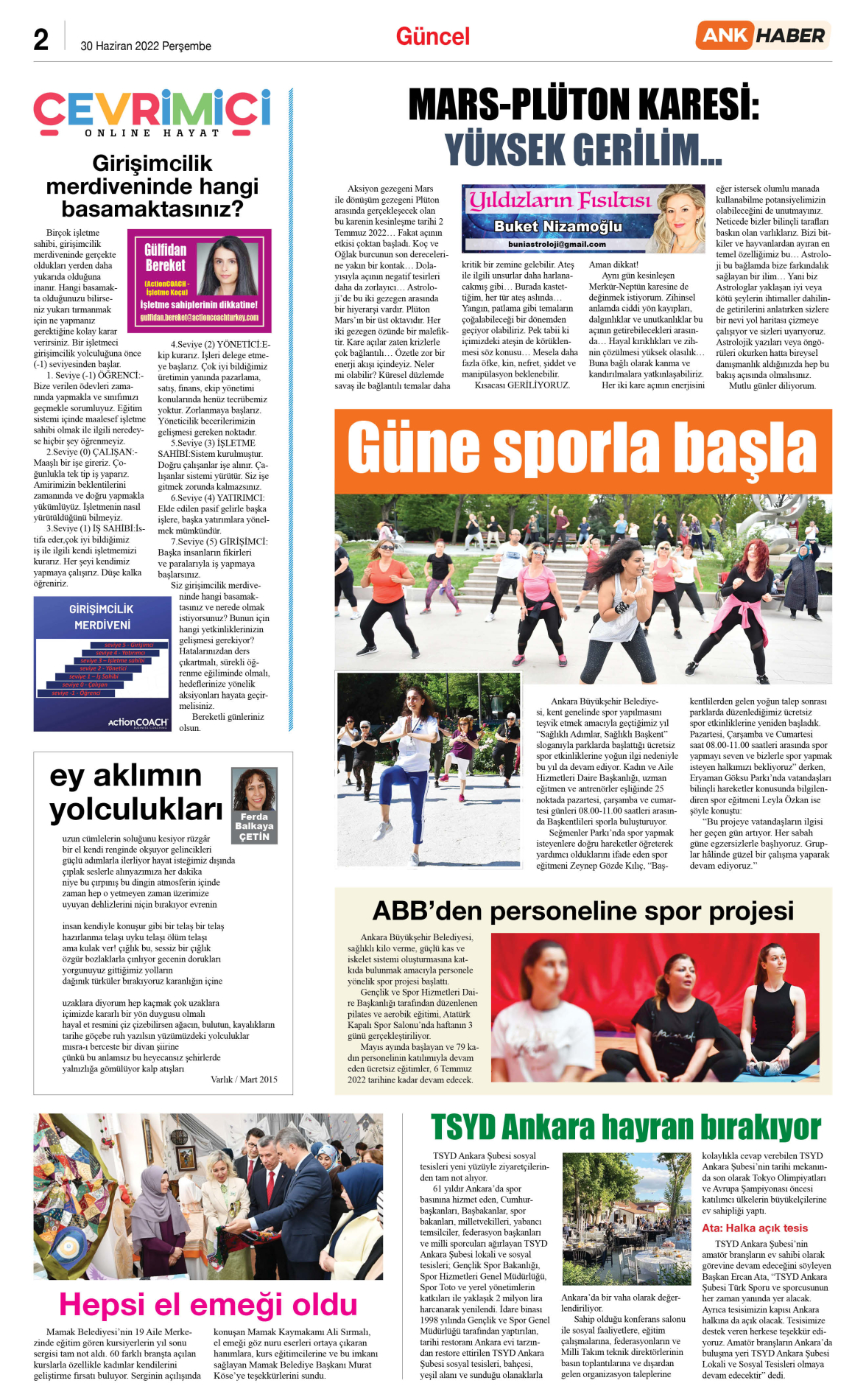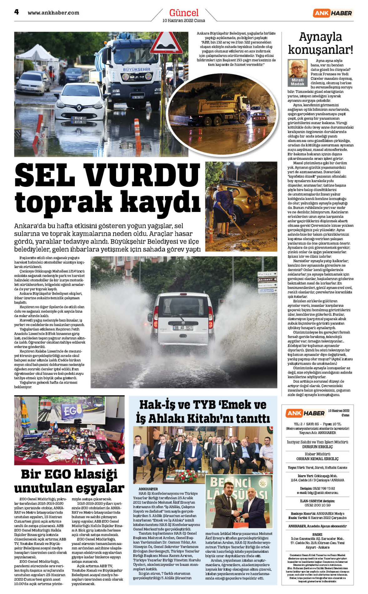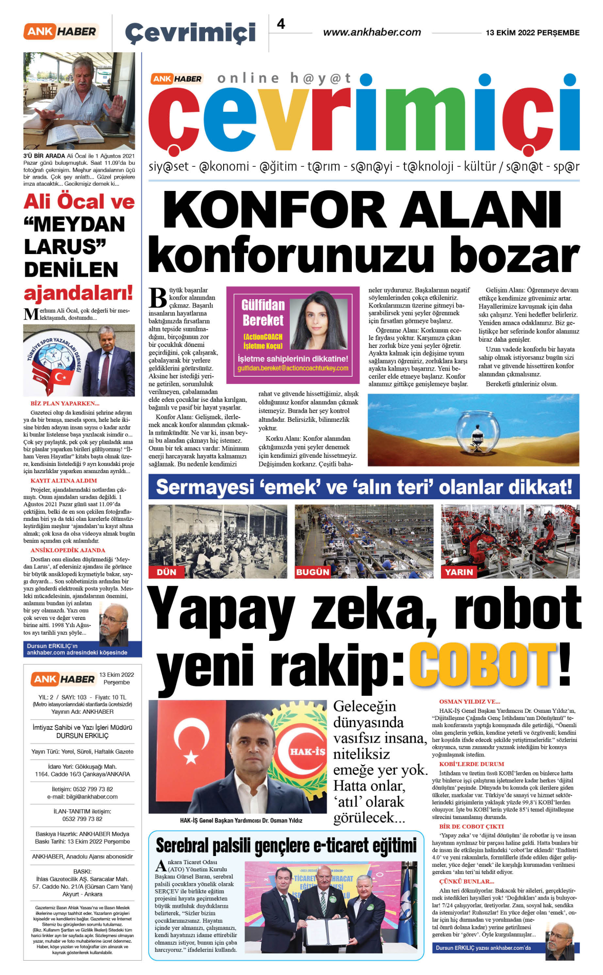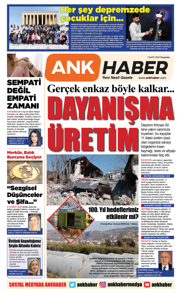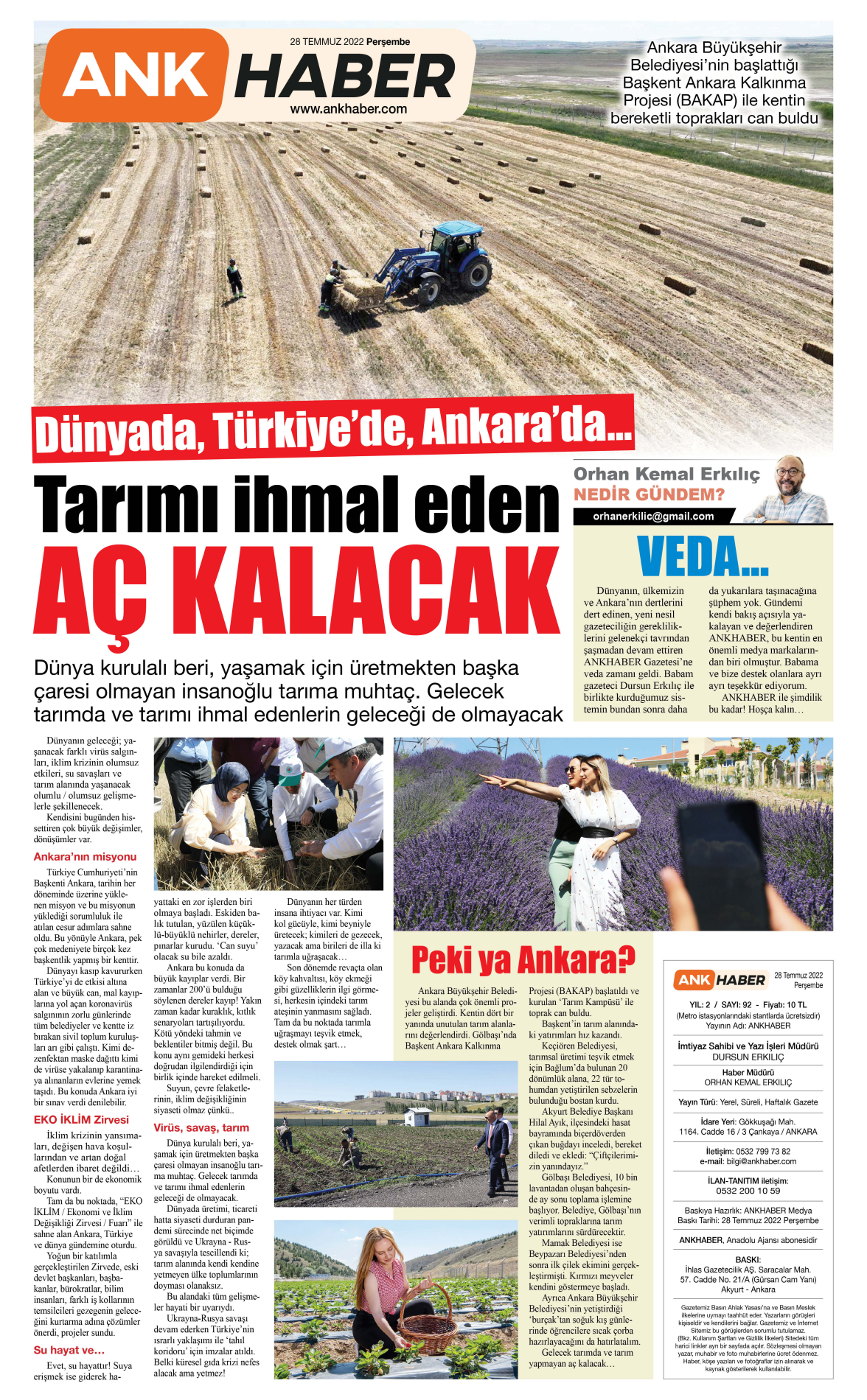 Basılı dağıtımı PTT aracılığıyla yapılan ANKHABER Gazetesi’nin 49. sayısı internet sitesinde dijital olarak yayında…
