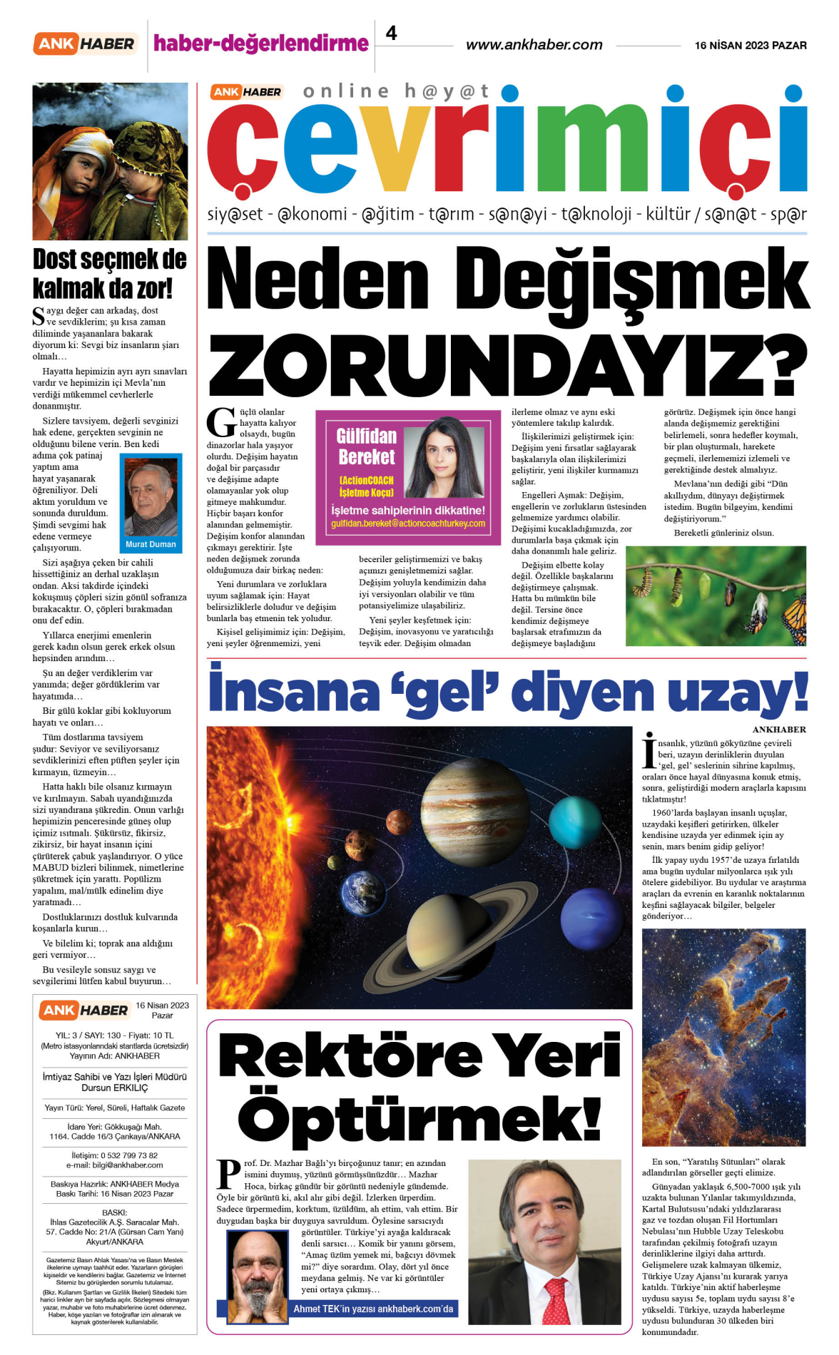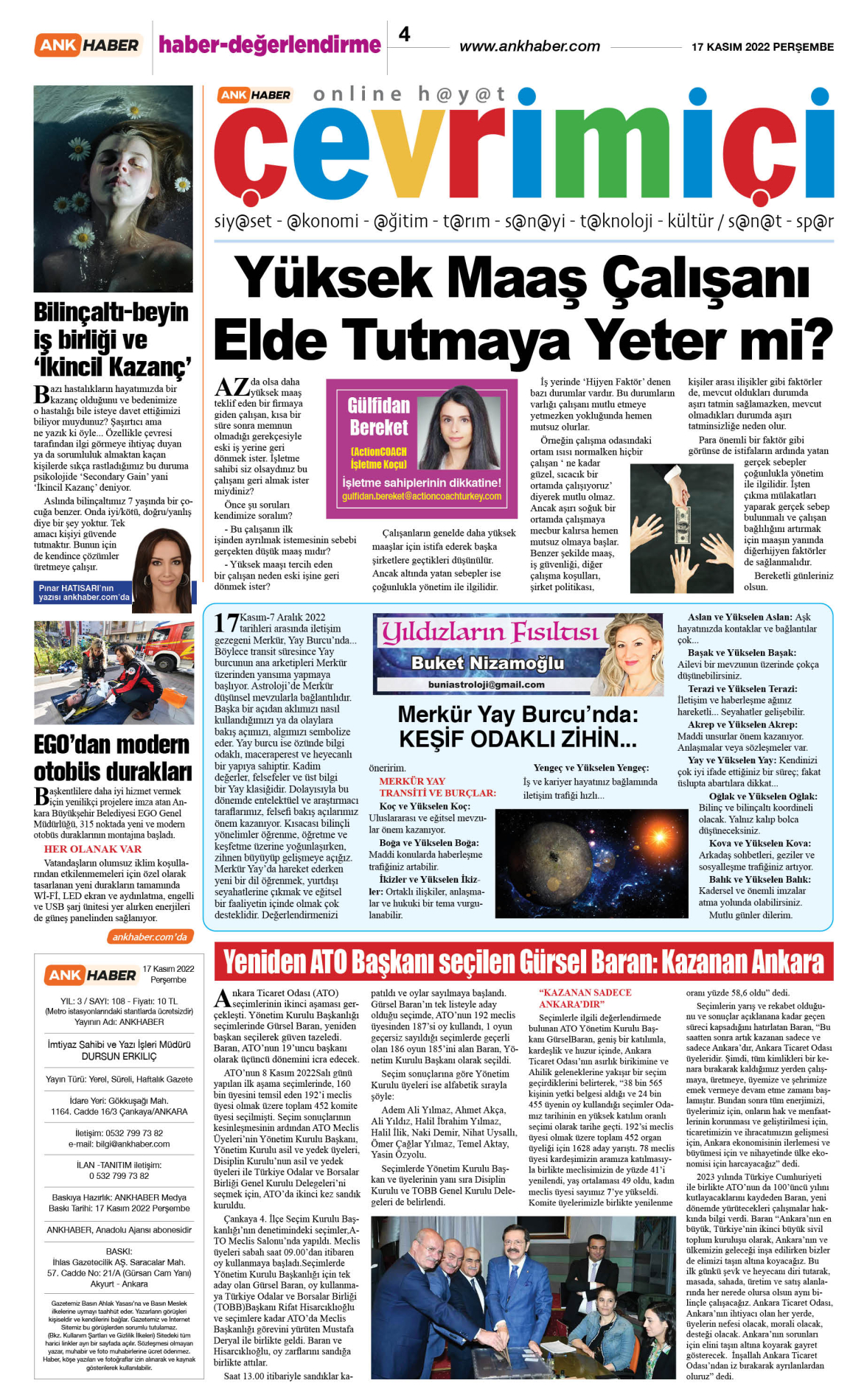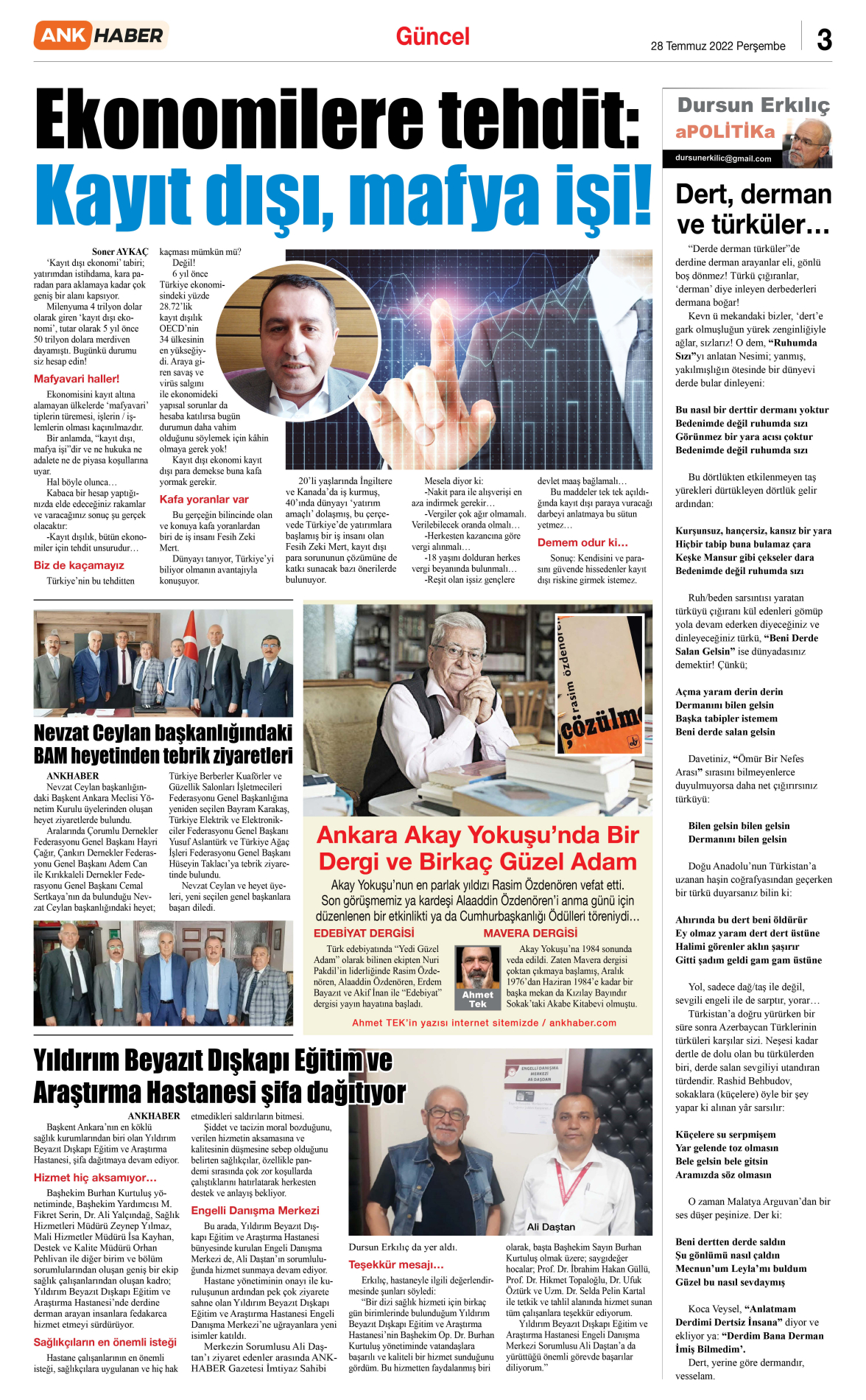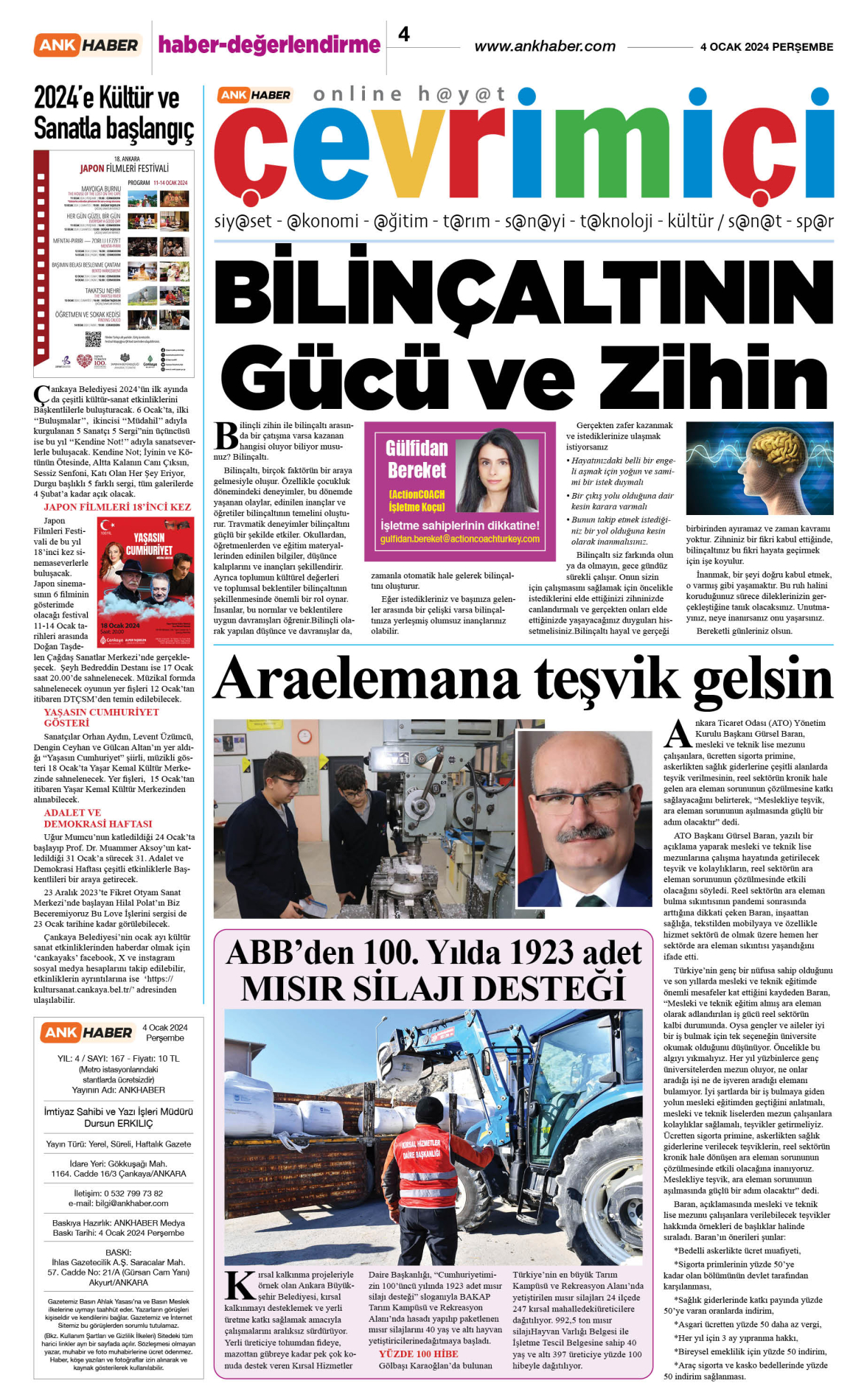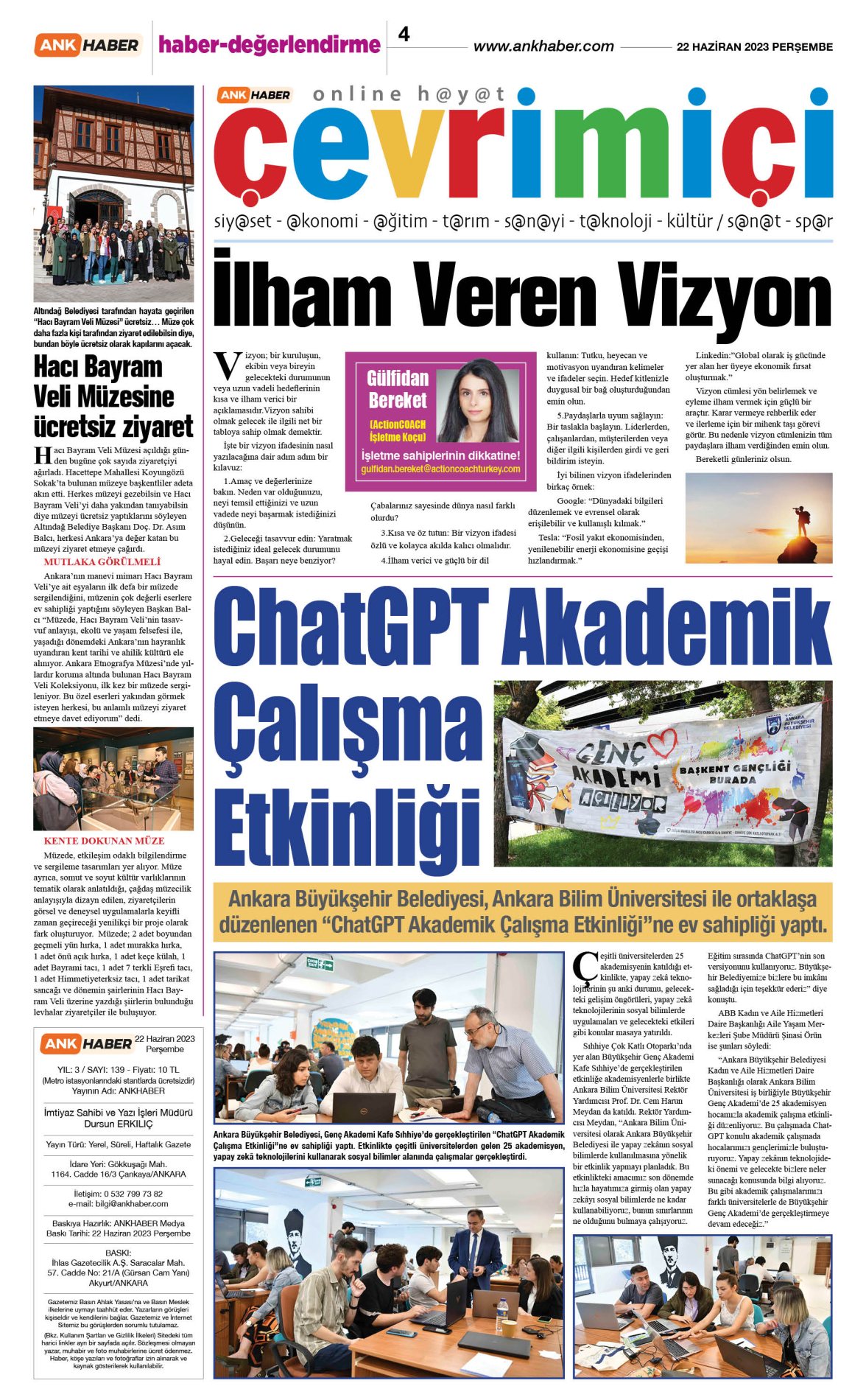 Basılı dağıtımı PTT aracılığıyla yapılan ANKHABER Gazetesi’nin 49. sayısı internet sitesinde dijital olarak yayında…