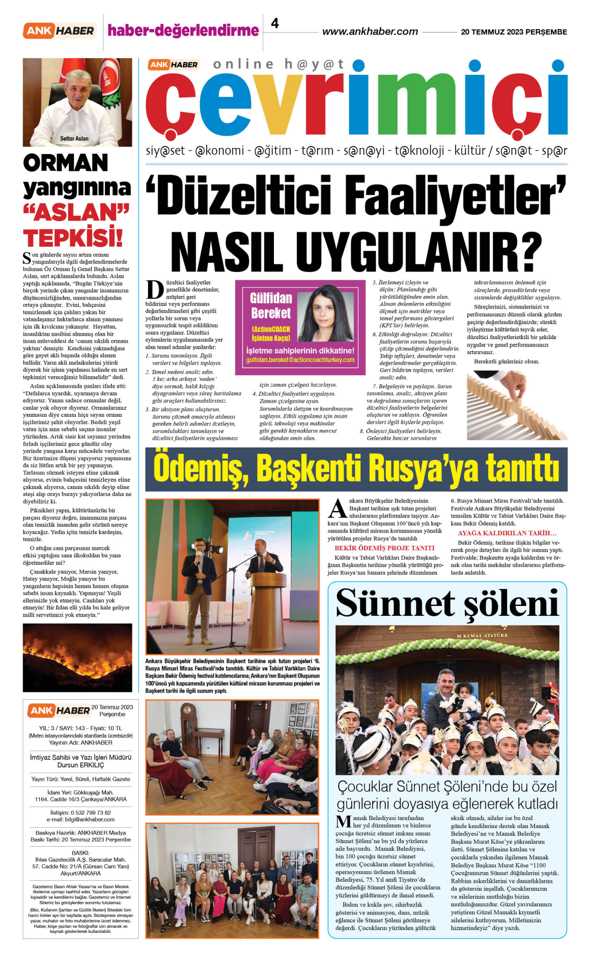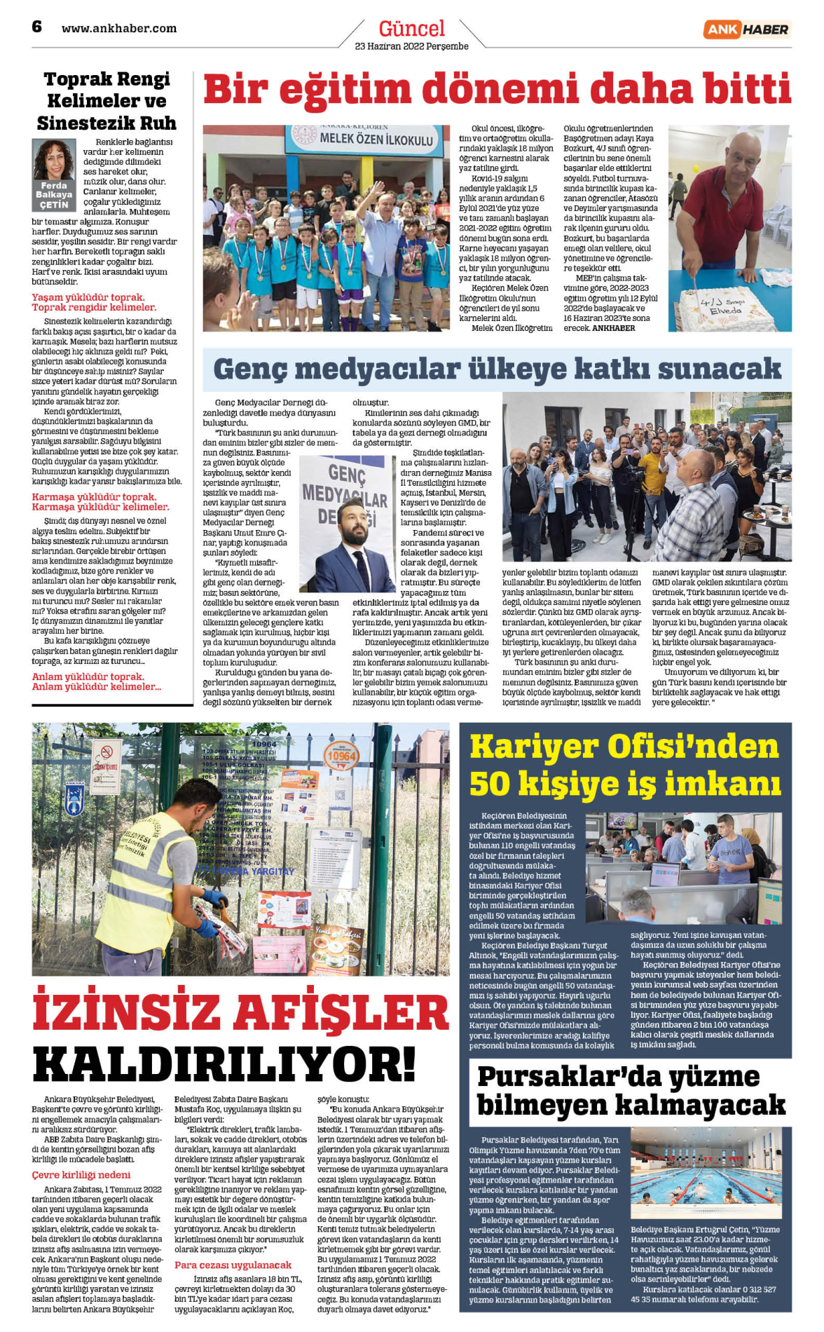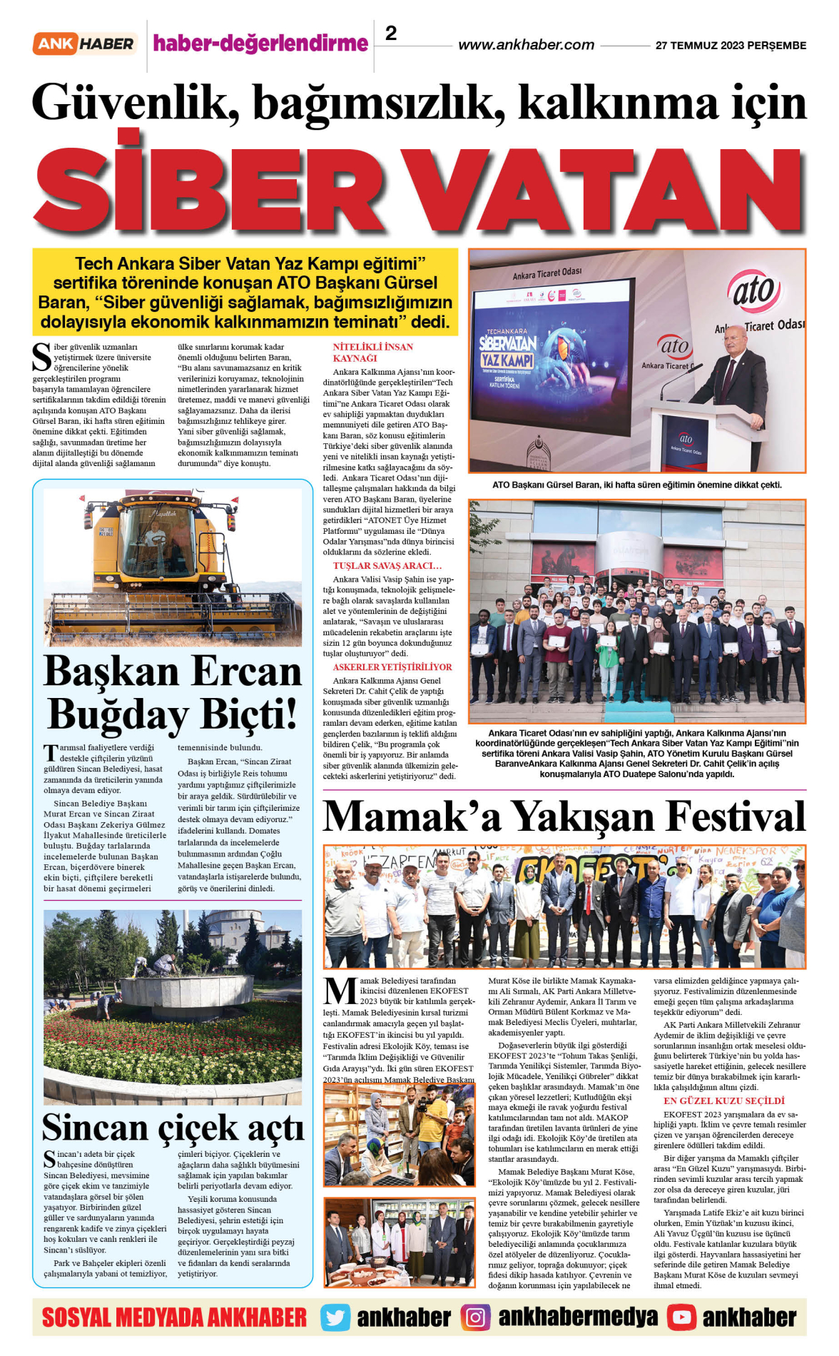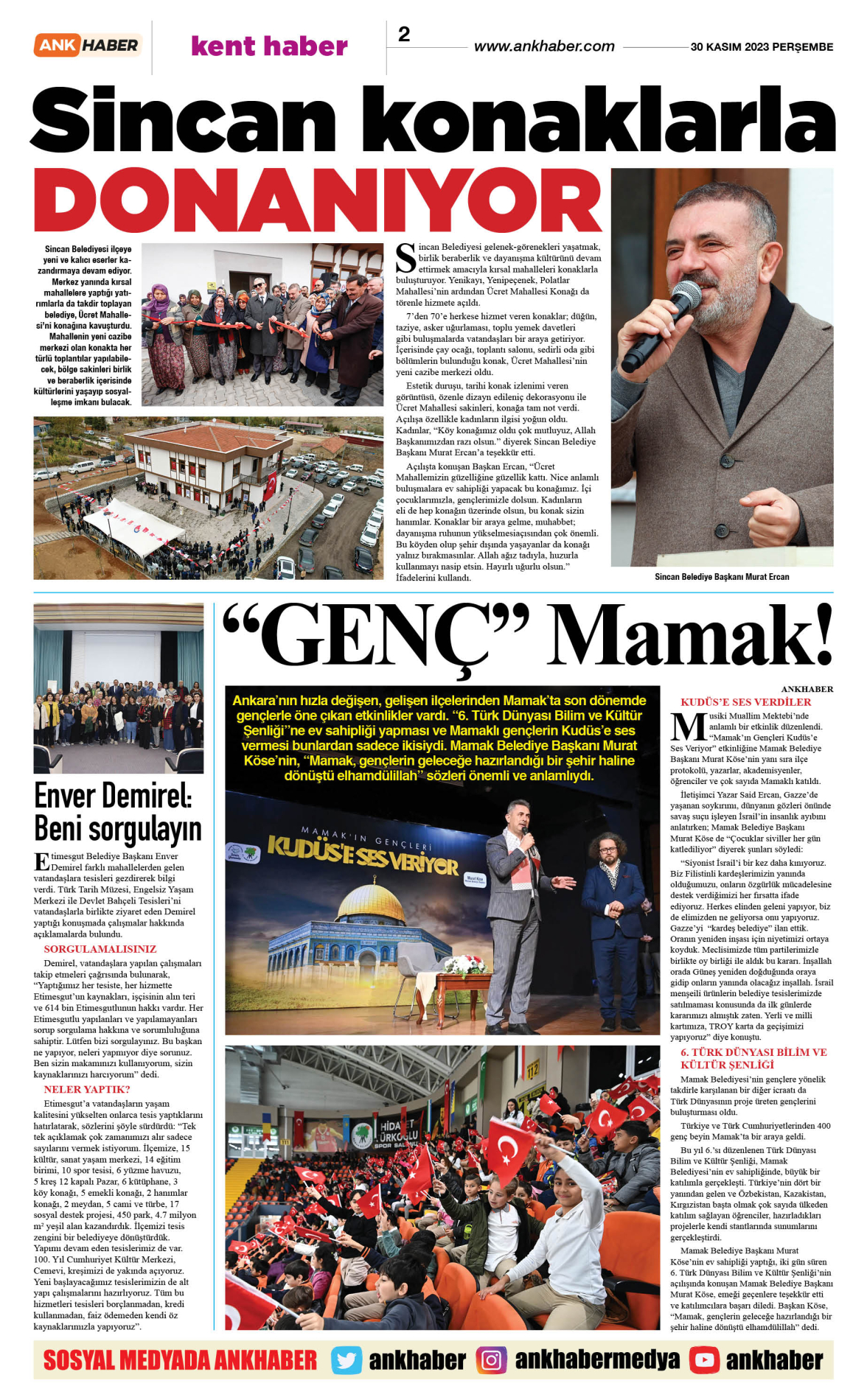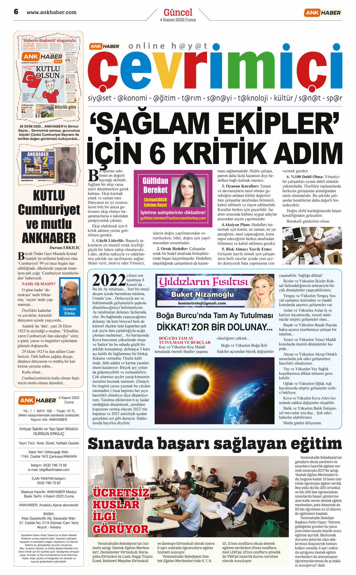 Basılı dağıtımı PTT aracılığıyla yapılan ANKHABER Gazetesi’nin 49. sayısı internet sitesinde dijital olarak yayında…