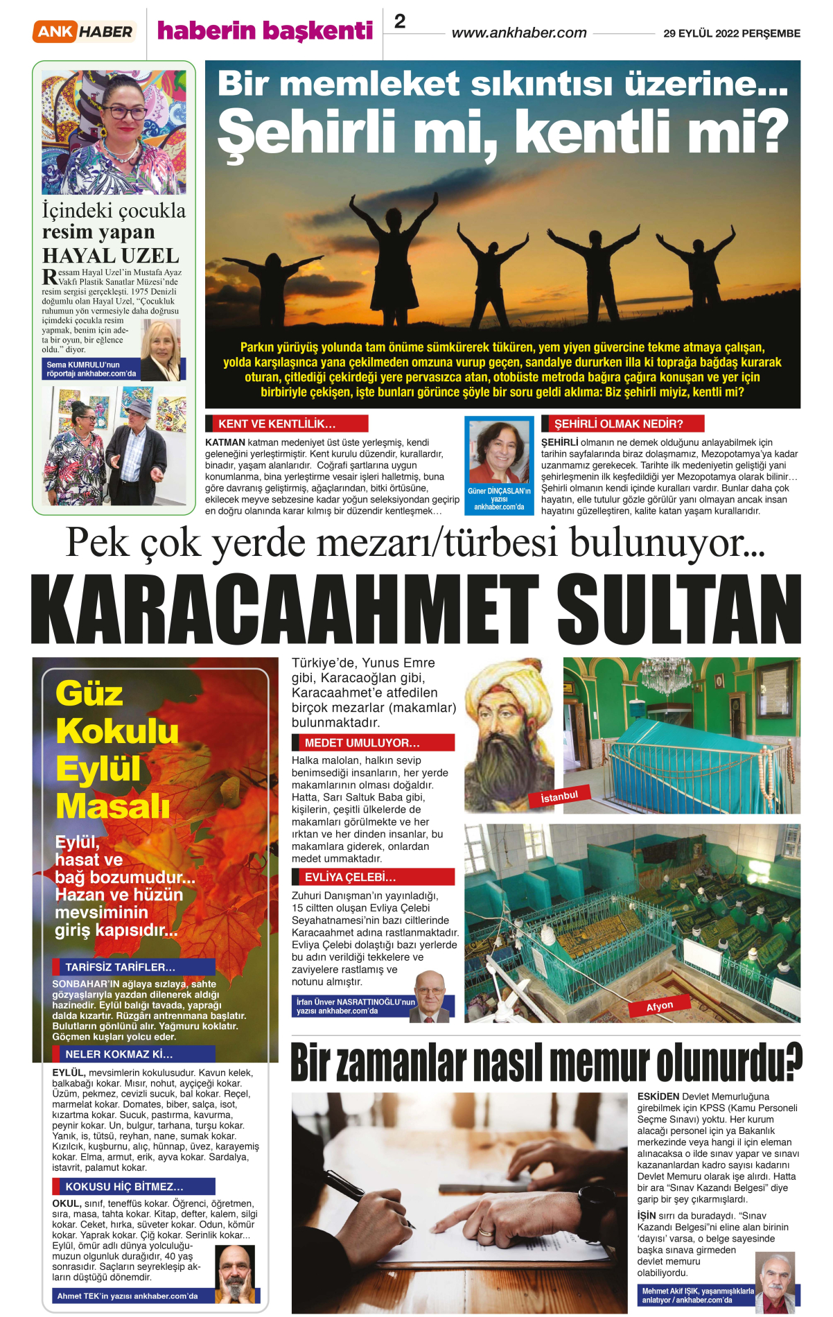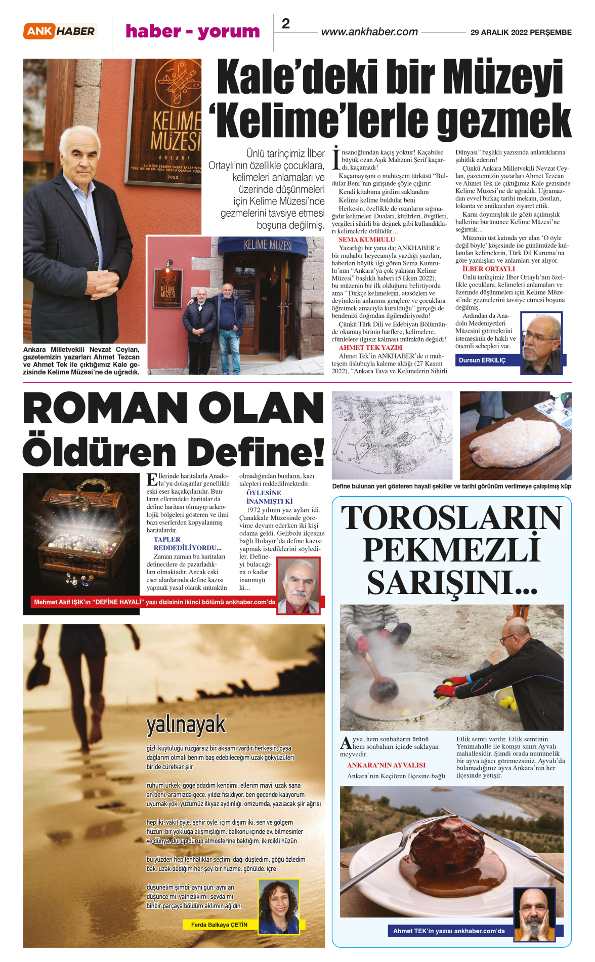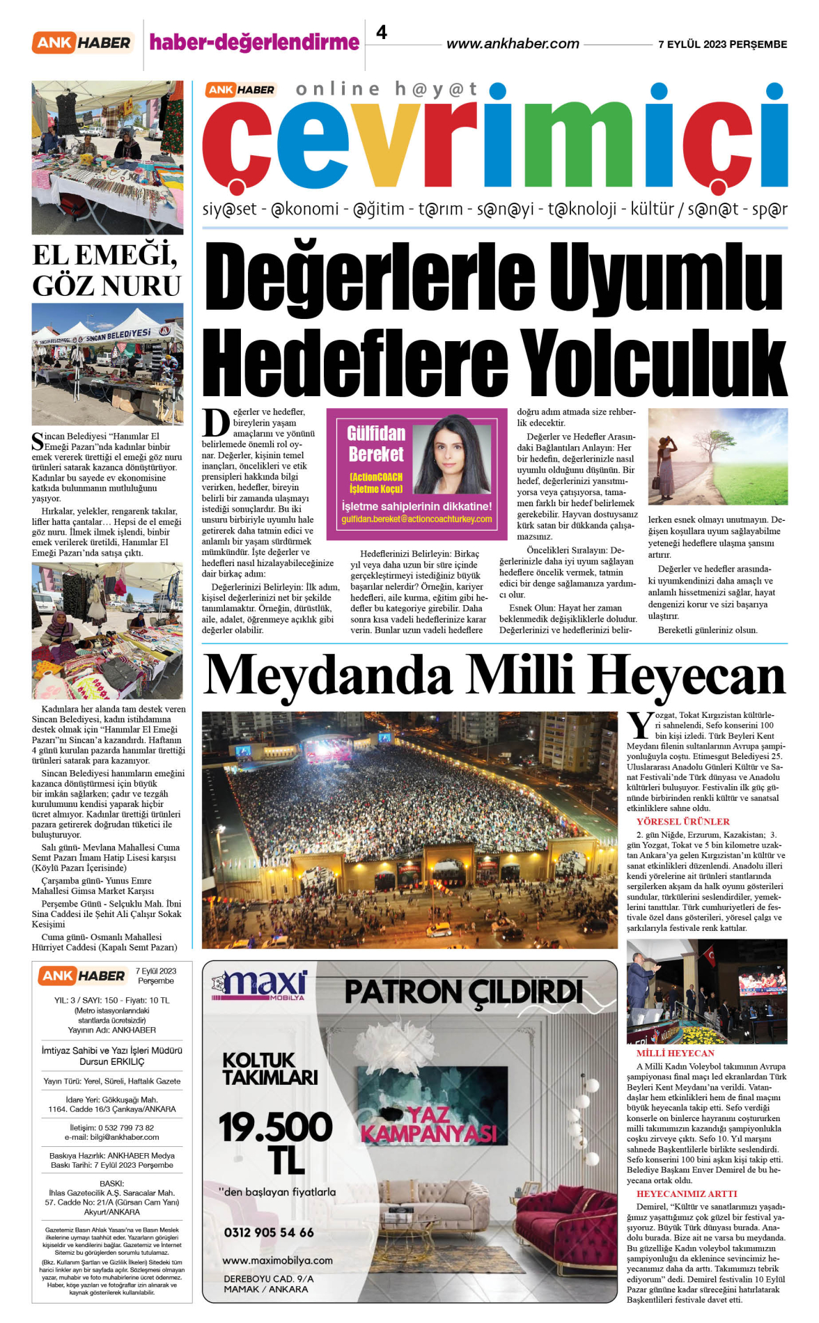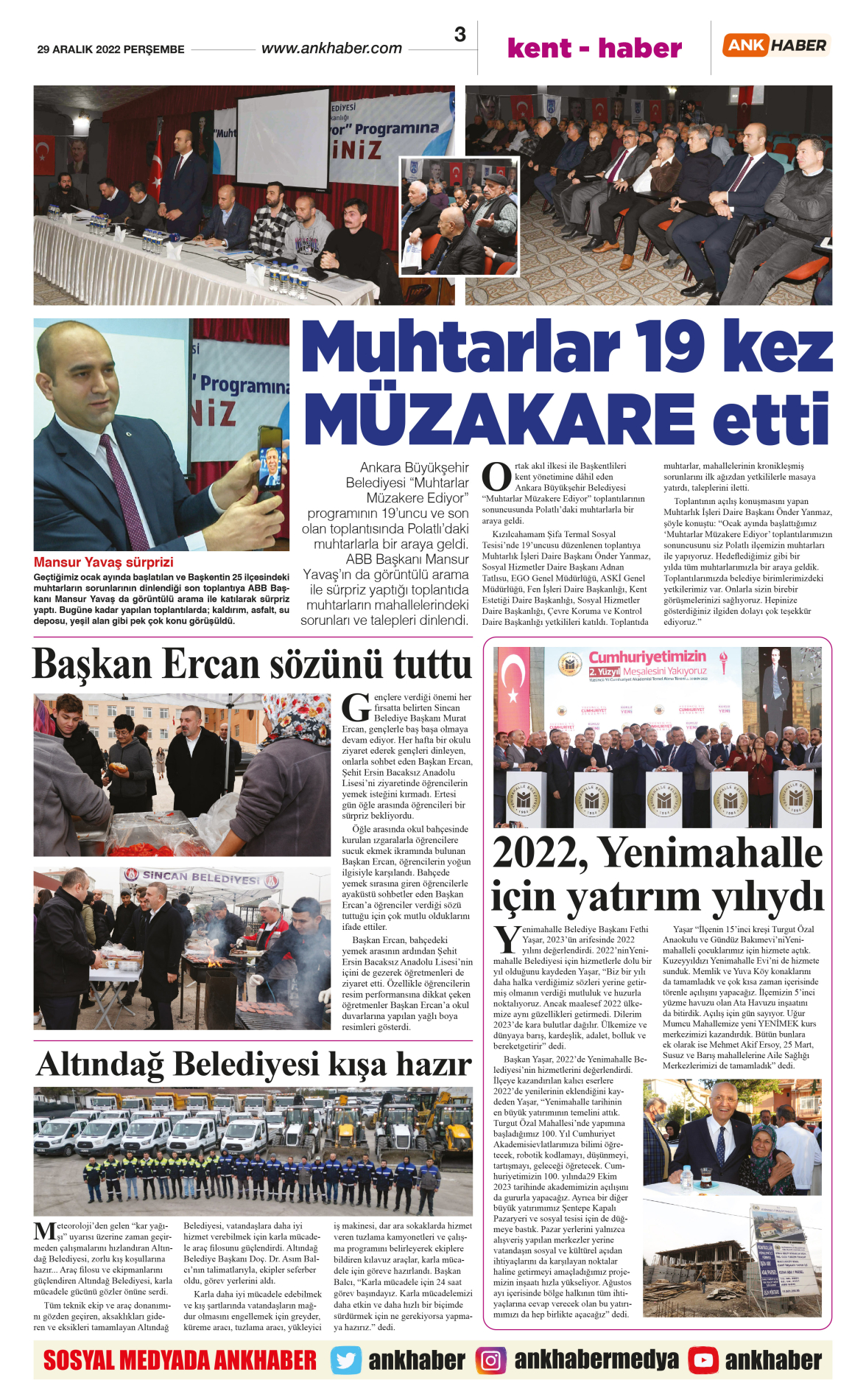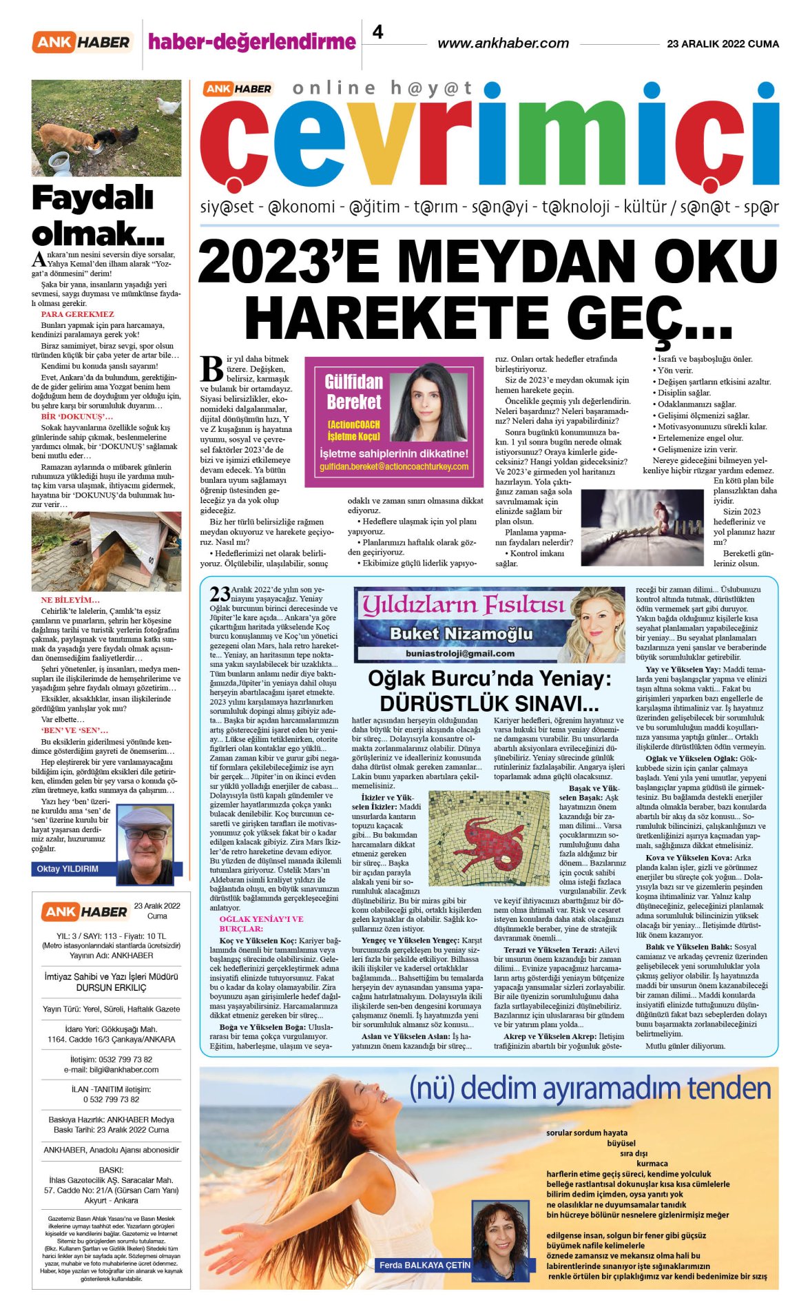 Basılı dağıtımı PTT aracılığıyla yapılan ANKHABER Gazetesi’nin 49. sayısı internet sitesinde dijital olarak yayında…