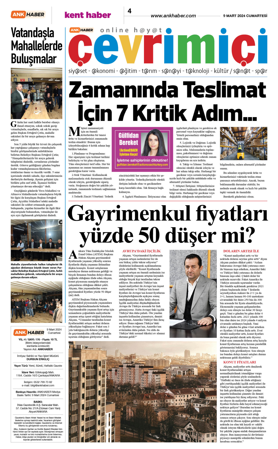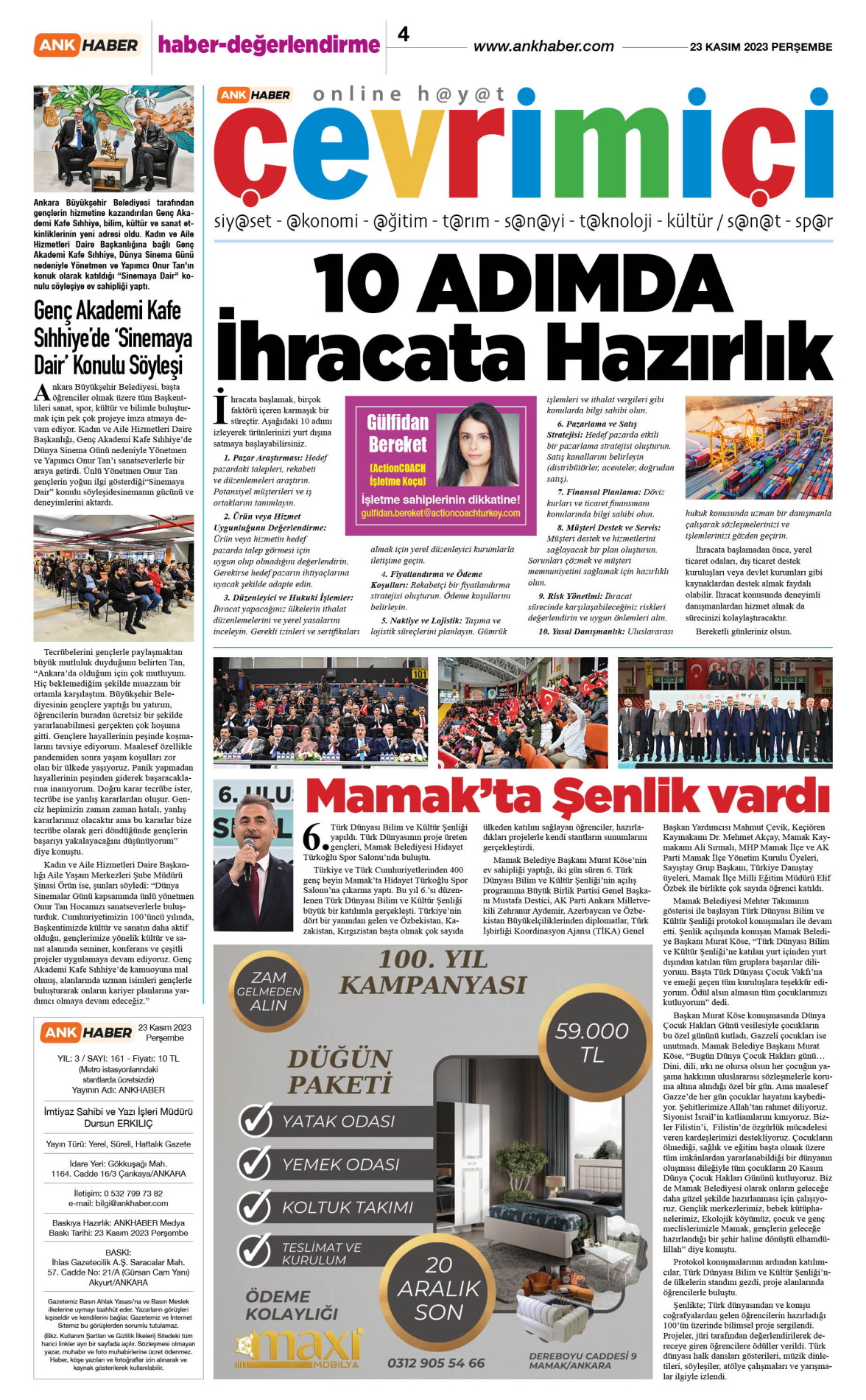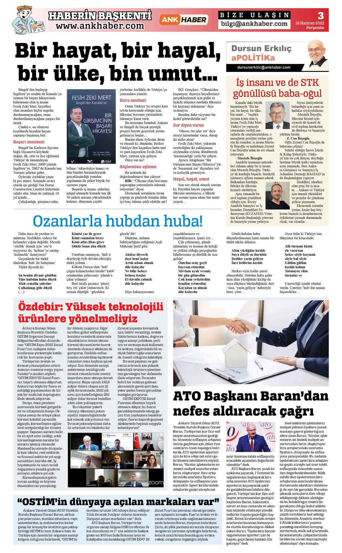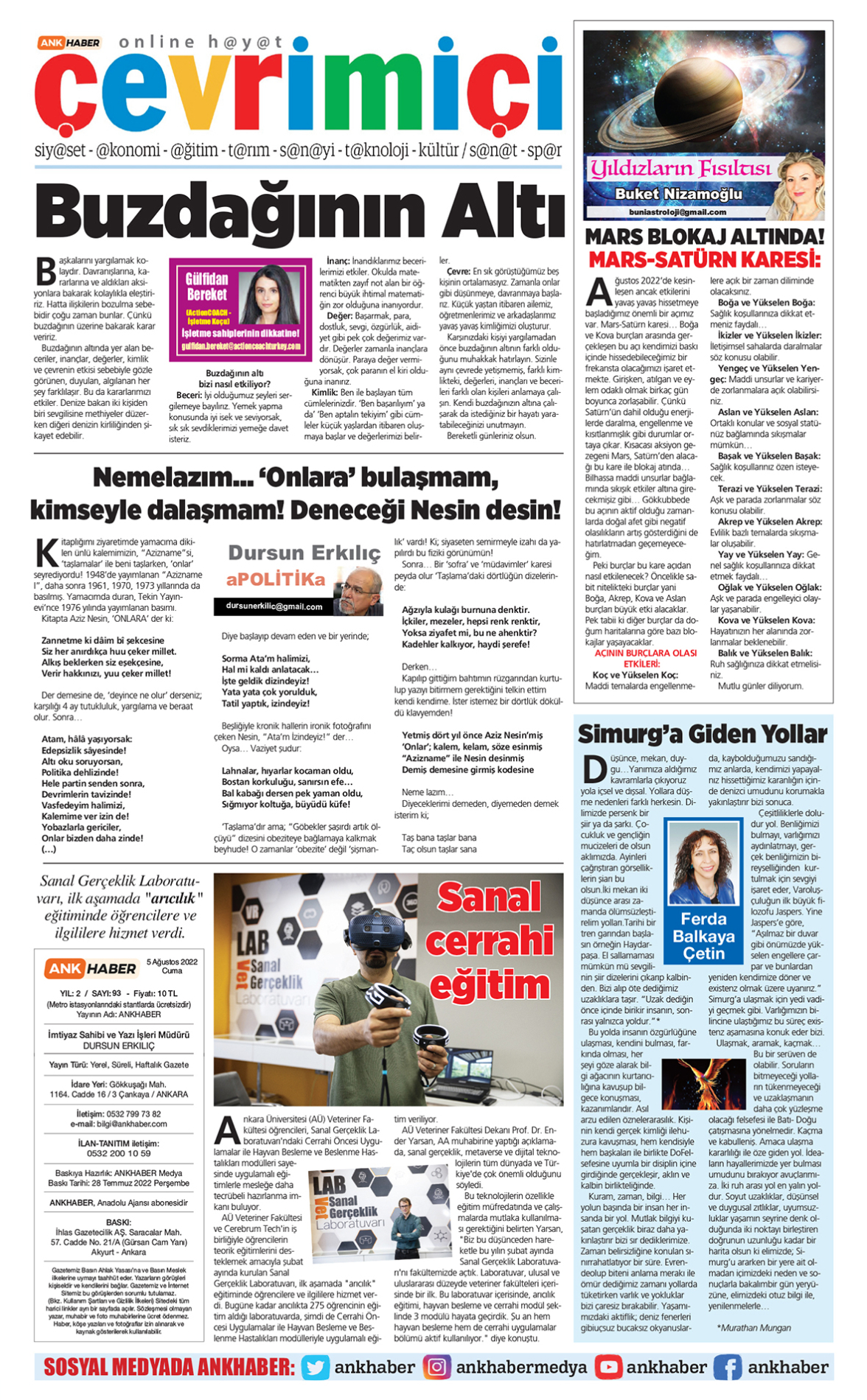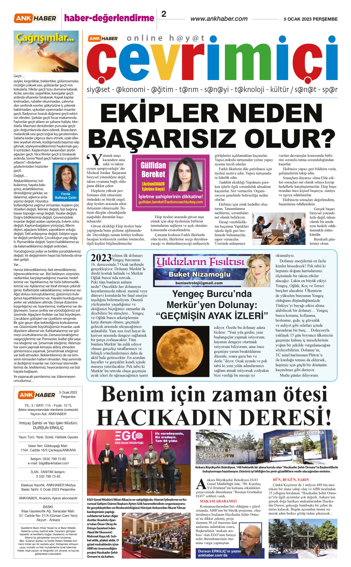 Basılı dağıtımı PTT aracılığıyla yapılan ANKHABER Gazetesi’nin 49. sayısı internet sitesinde dijital olarak yayında…