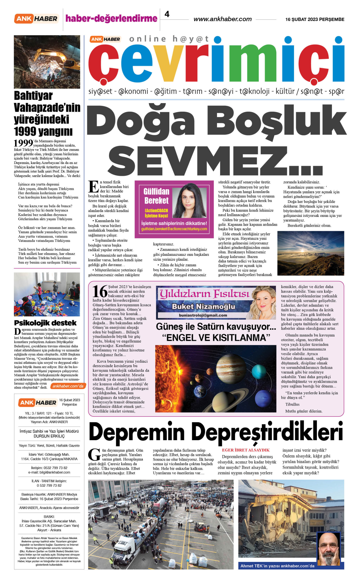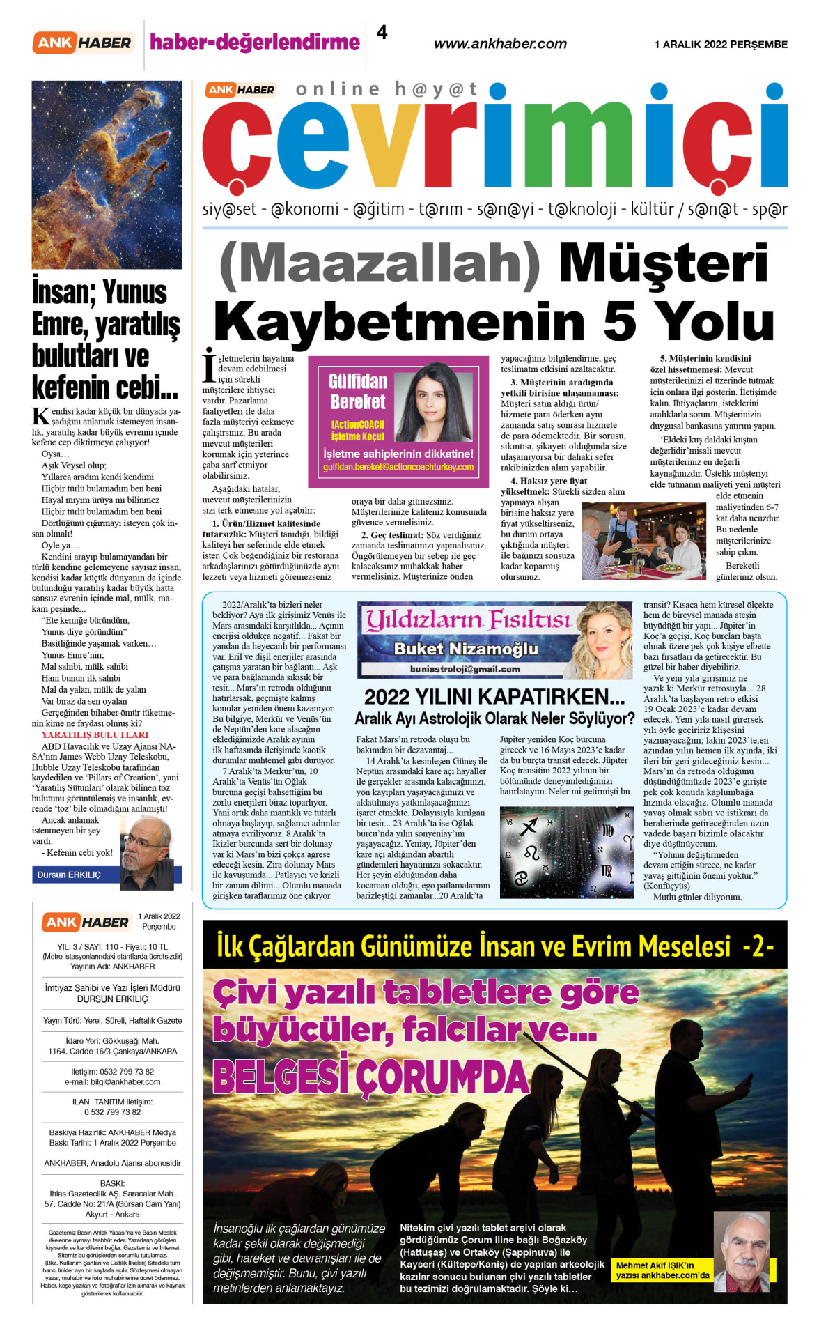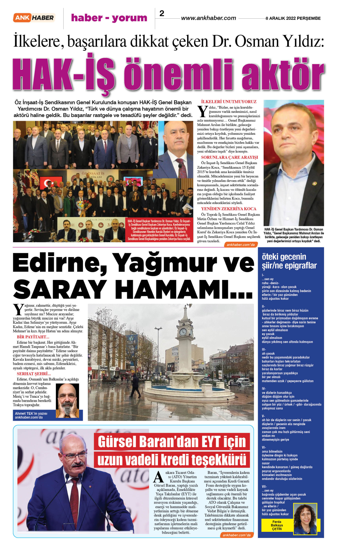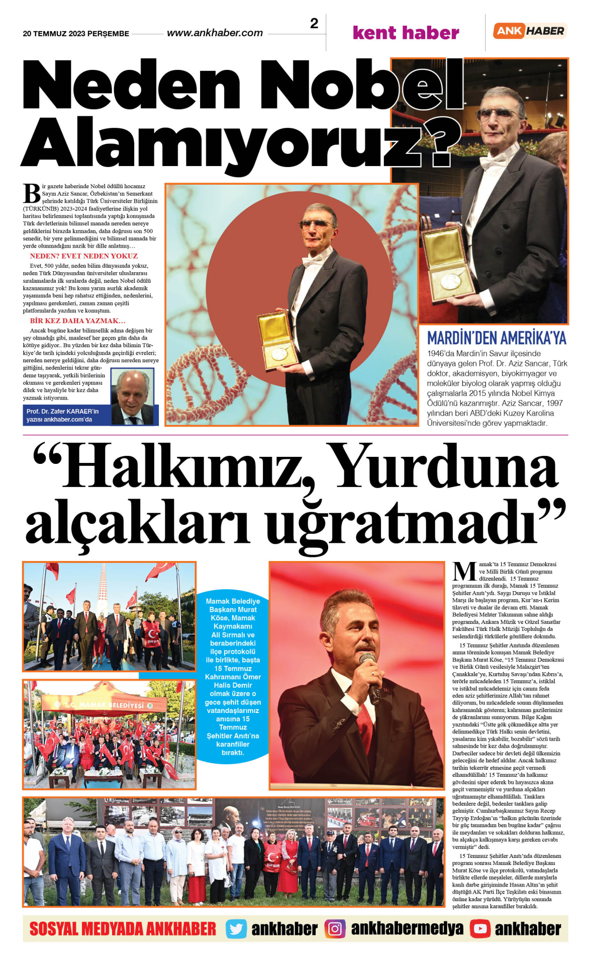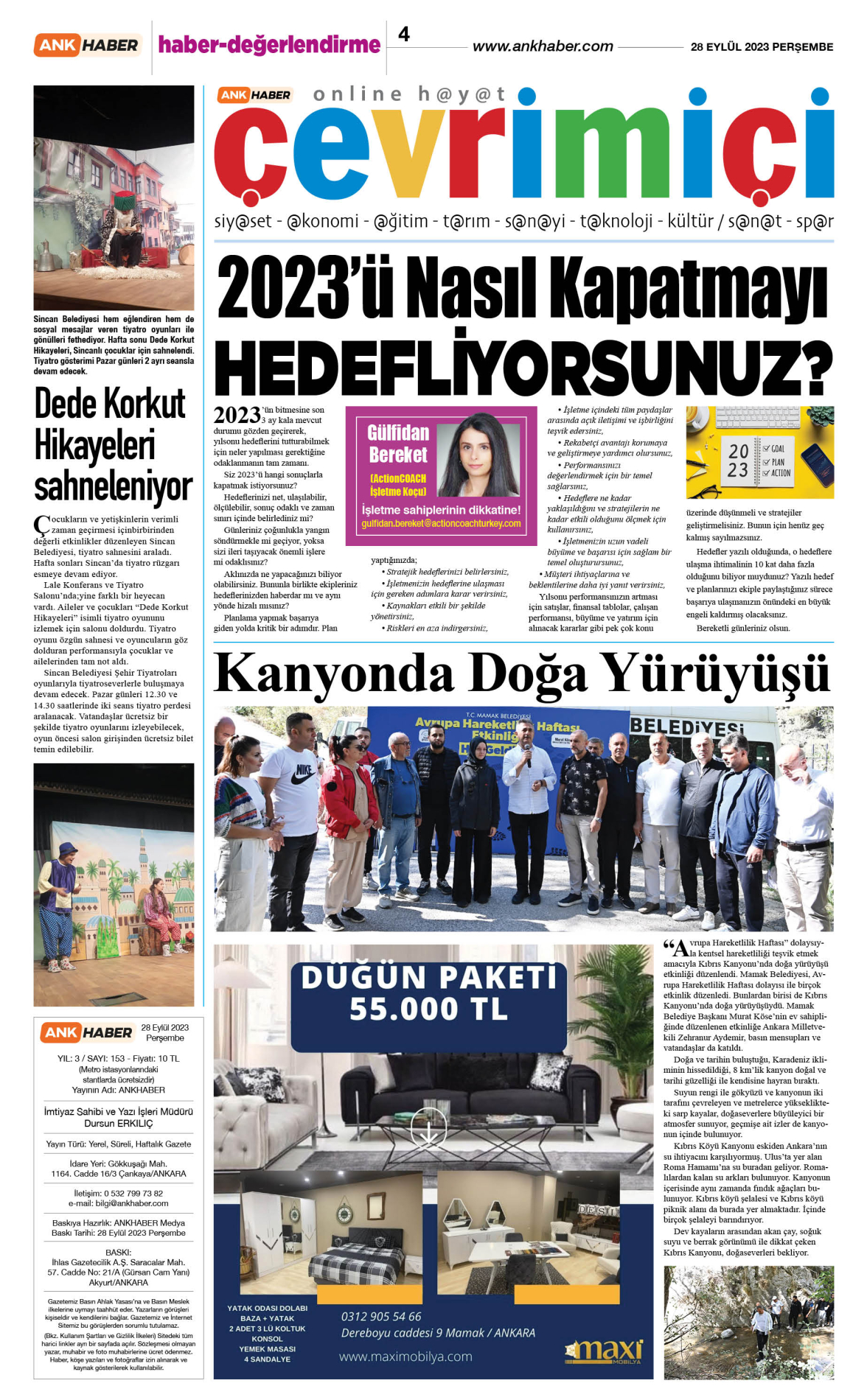 Basılı dağıtımı PTT aracılığıyla yapılan ANKHABER Gazetesi’nin 49. sayısı internet sitesinde dijital olarak yayında…