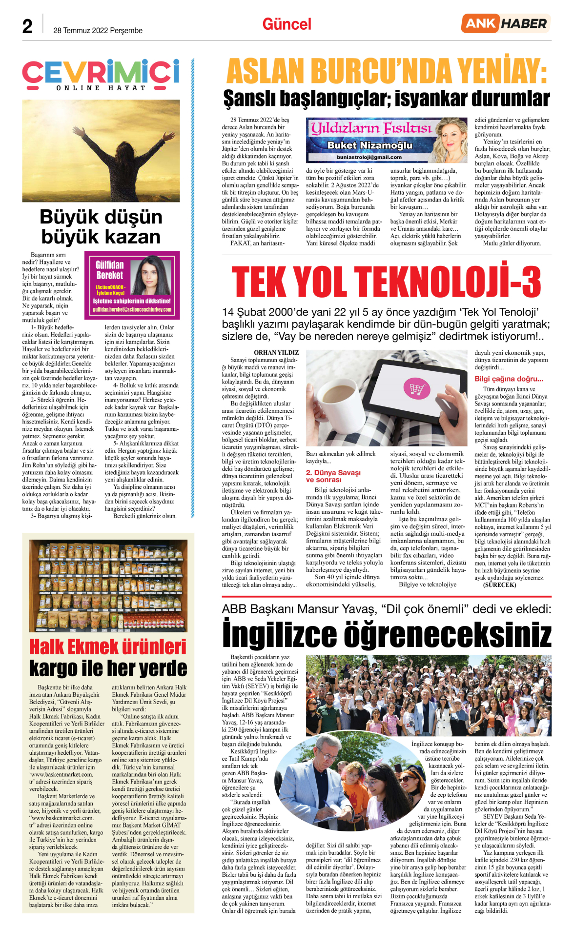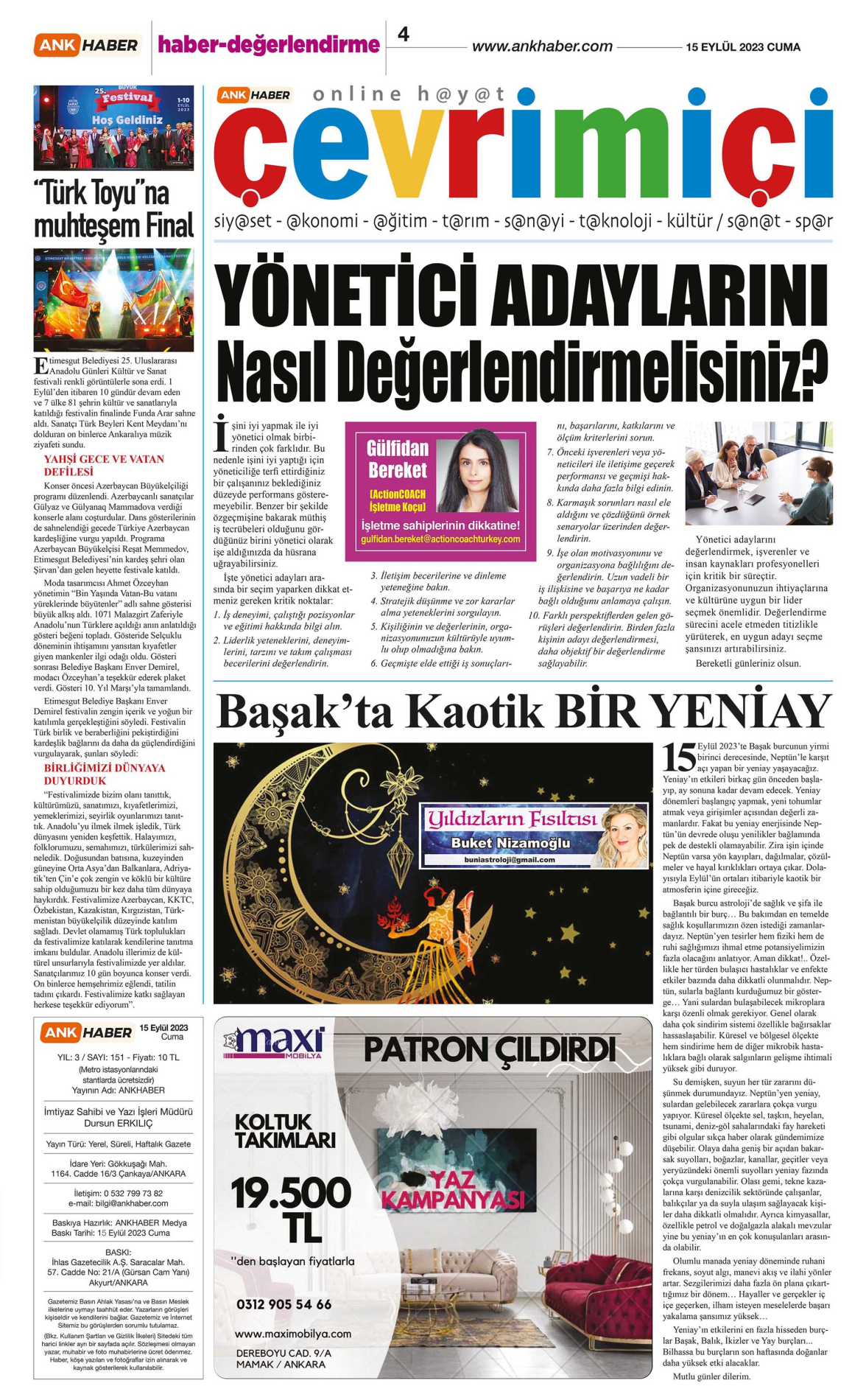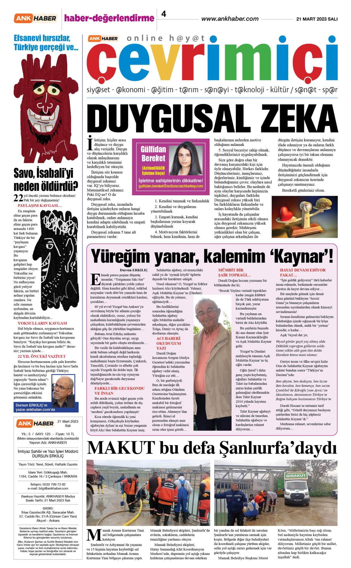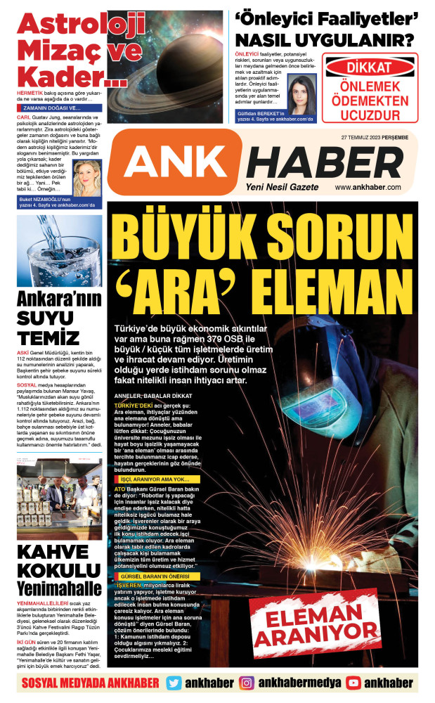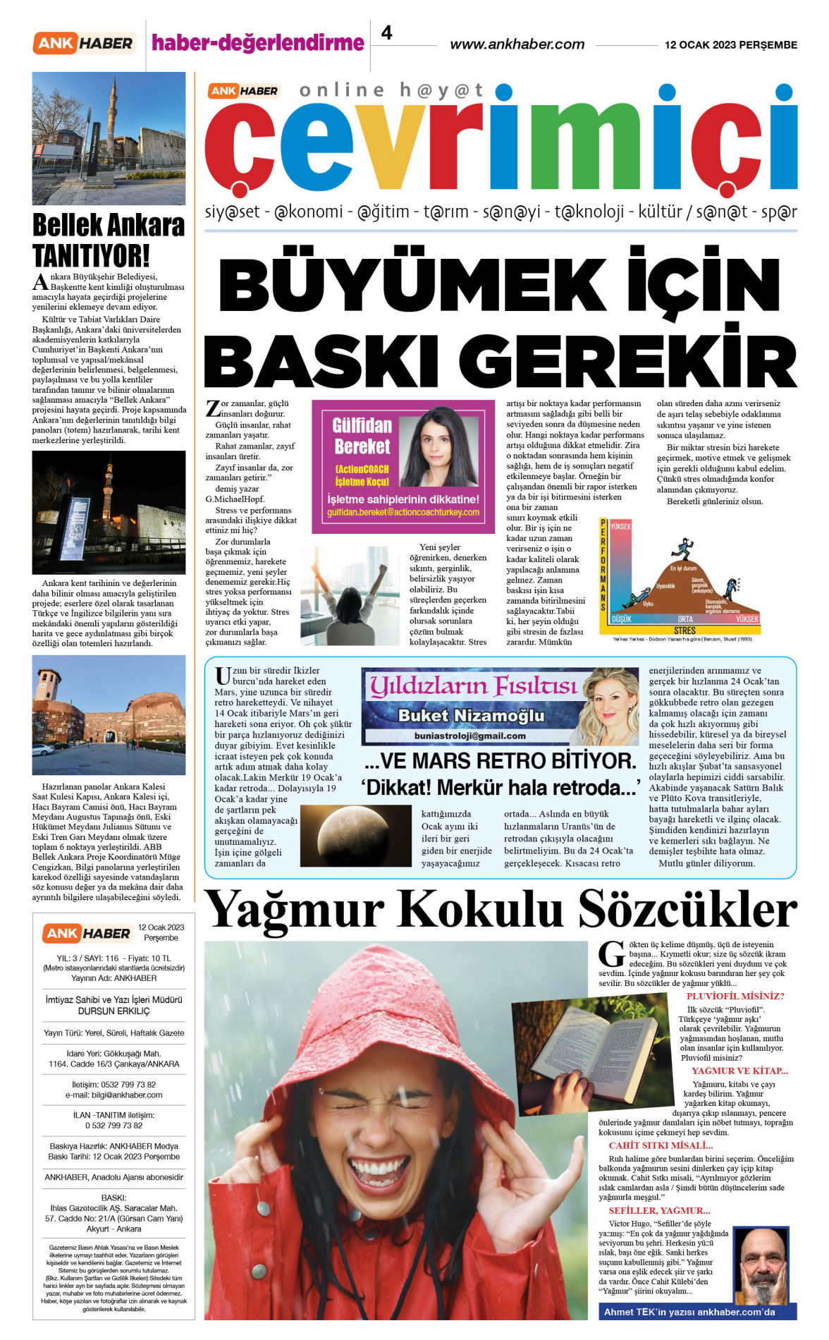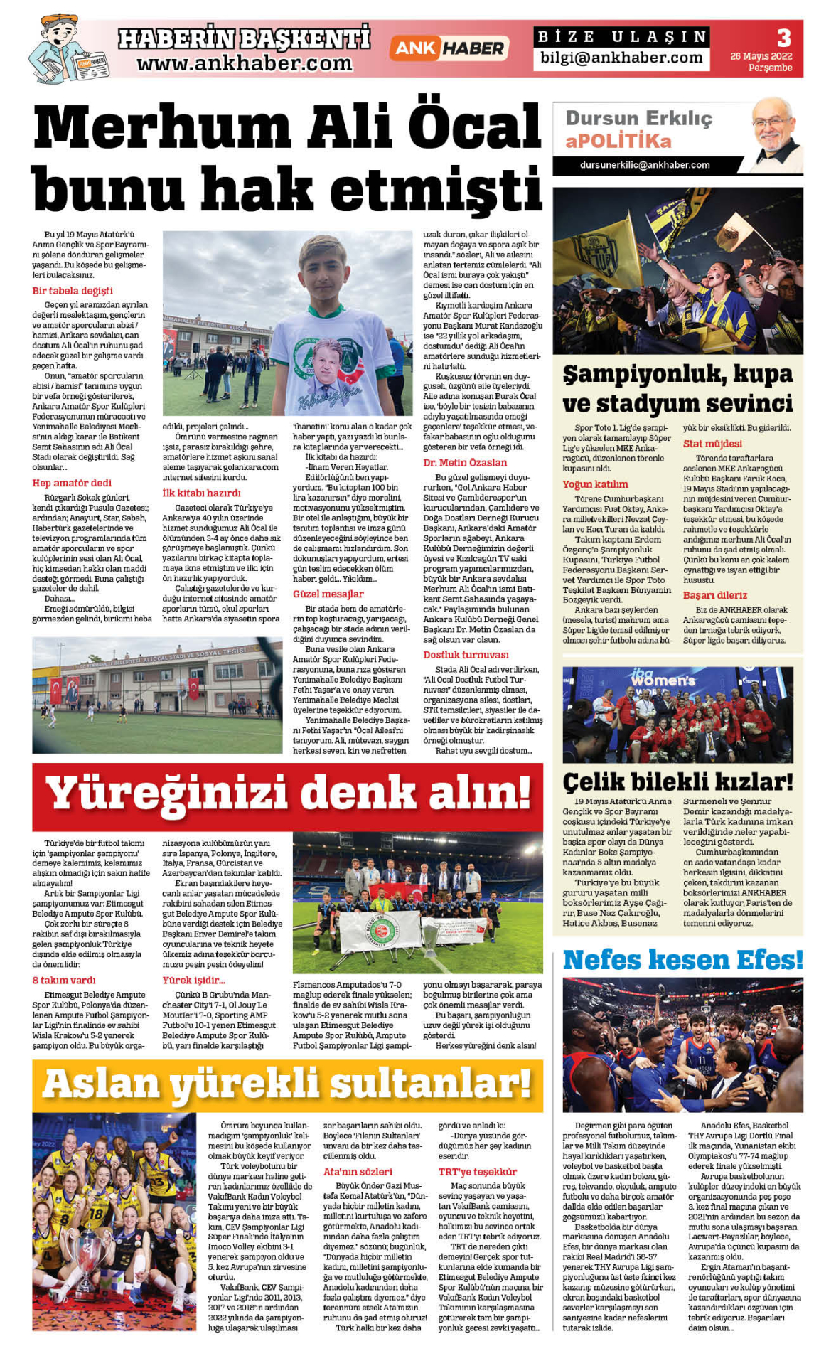 Basılı dağıtımı PTT aracılığıyla yapılan ANKHABER Gazetesi’nin 49. sayısı internet sitesinde dijital olarak yayında…