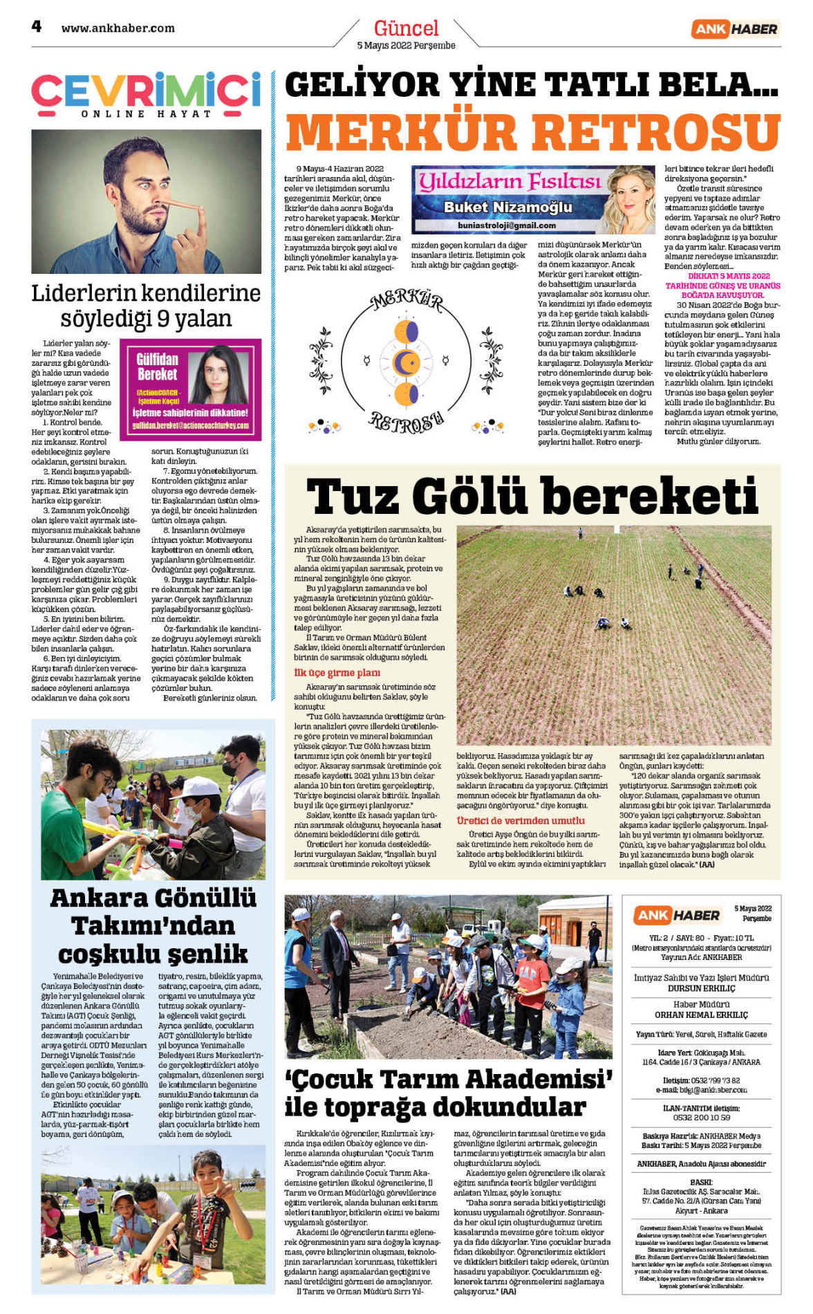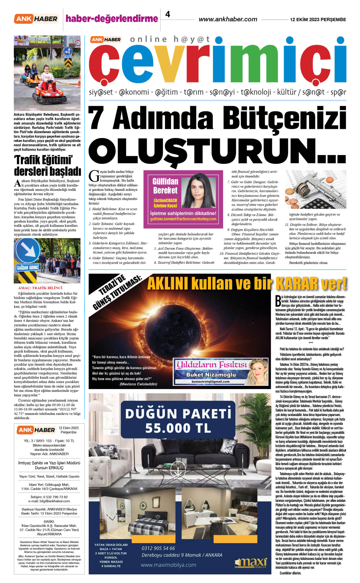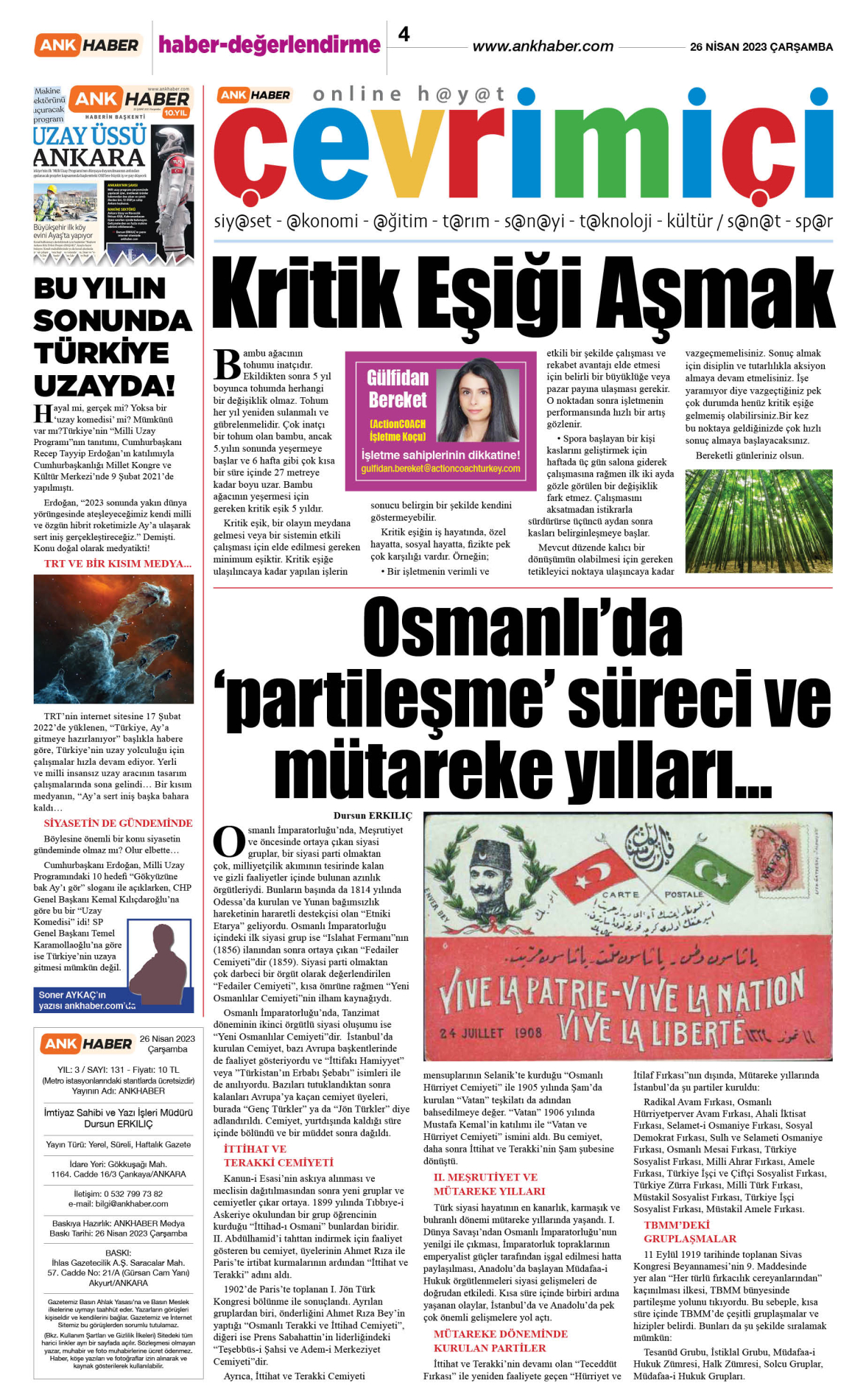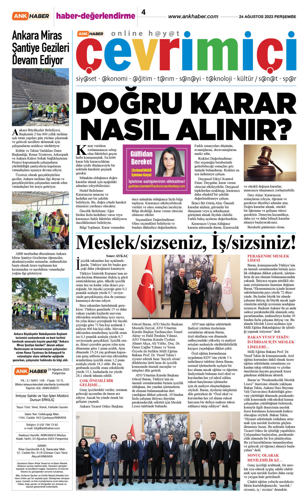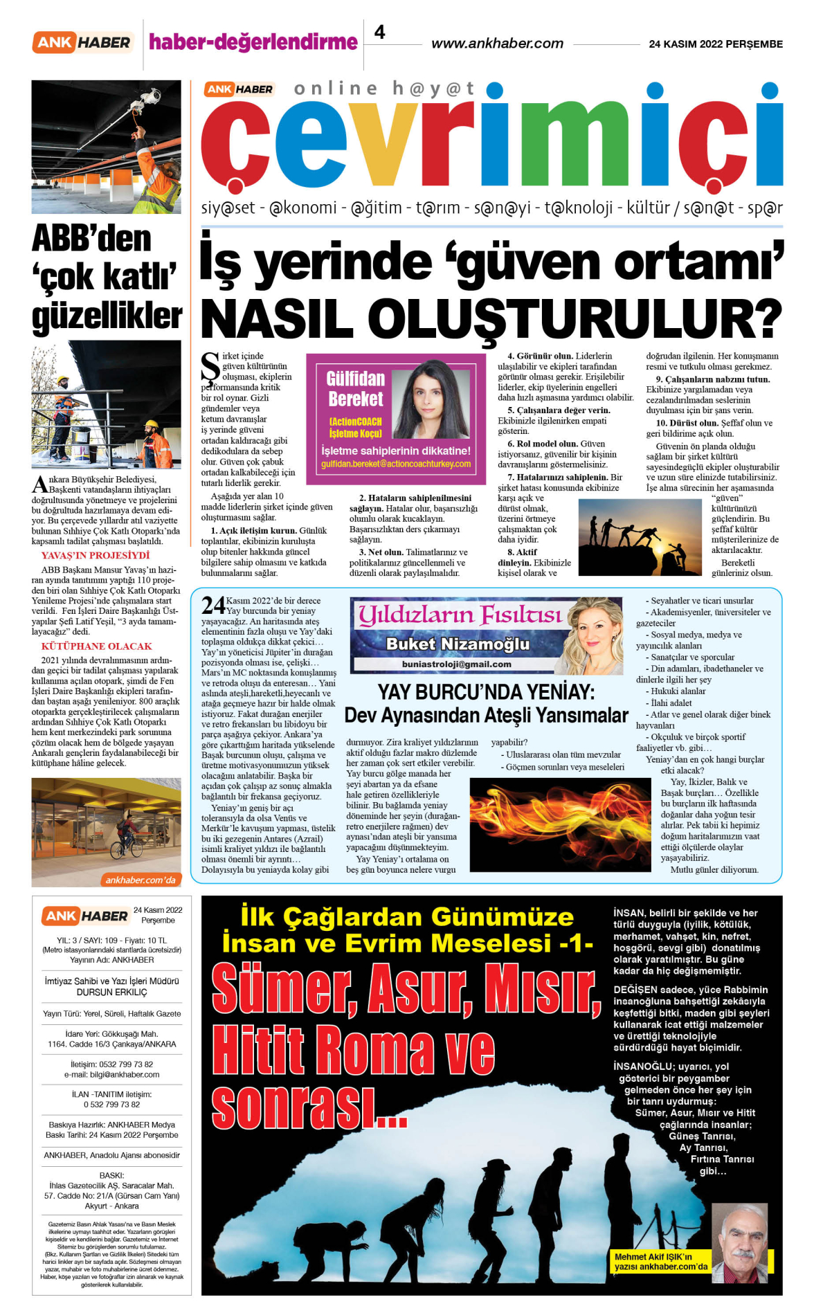 Basılı dağıtımı PTT aracılığıyla yapılan ANKHABER Gazetesi’nin 49. sayısı internet sitesinde dijital olarak yayında…