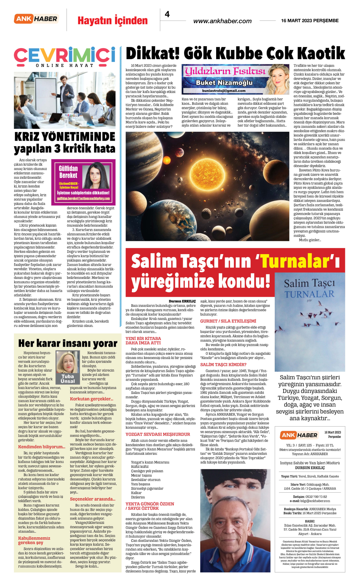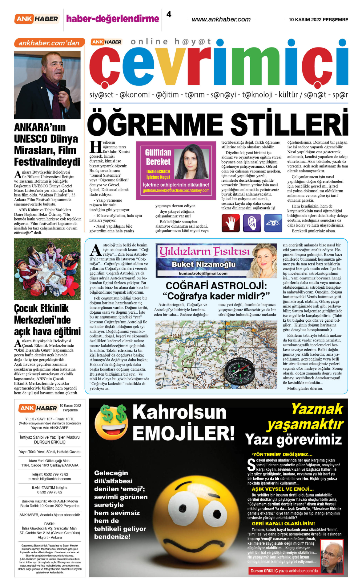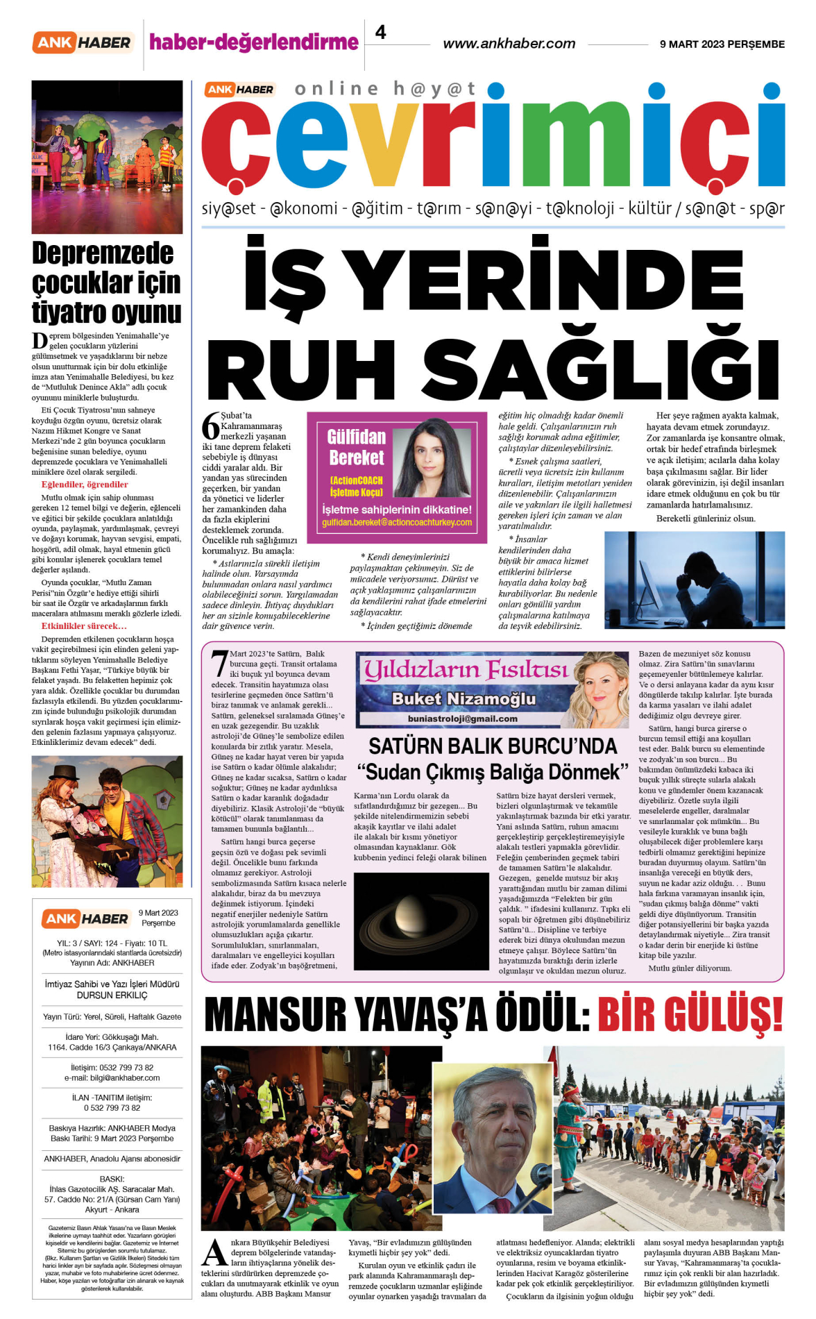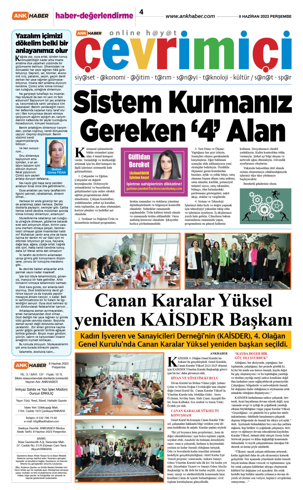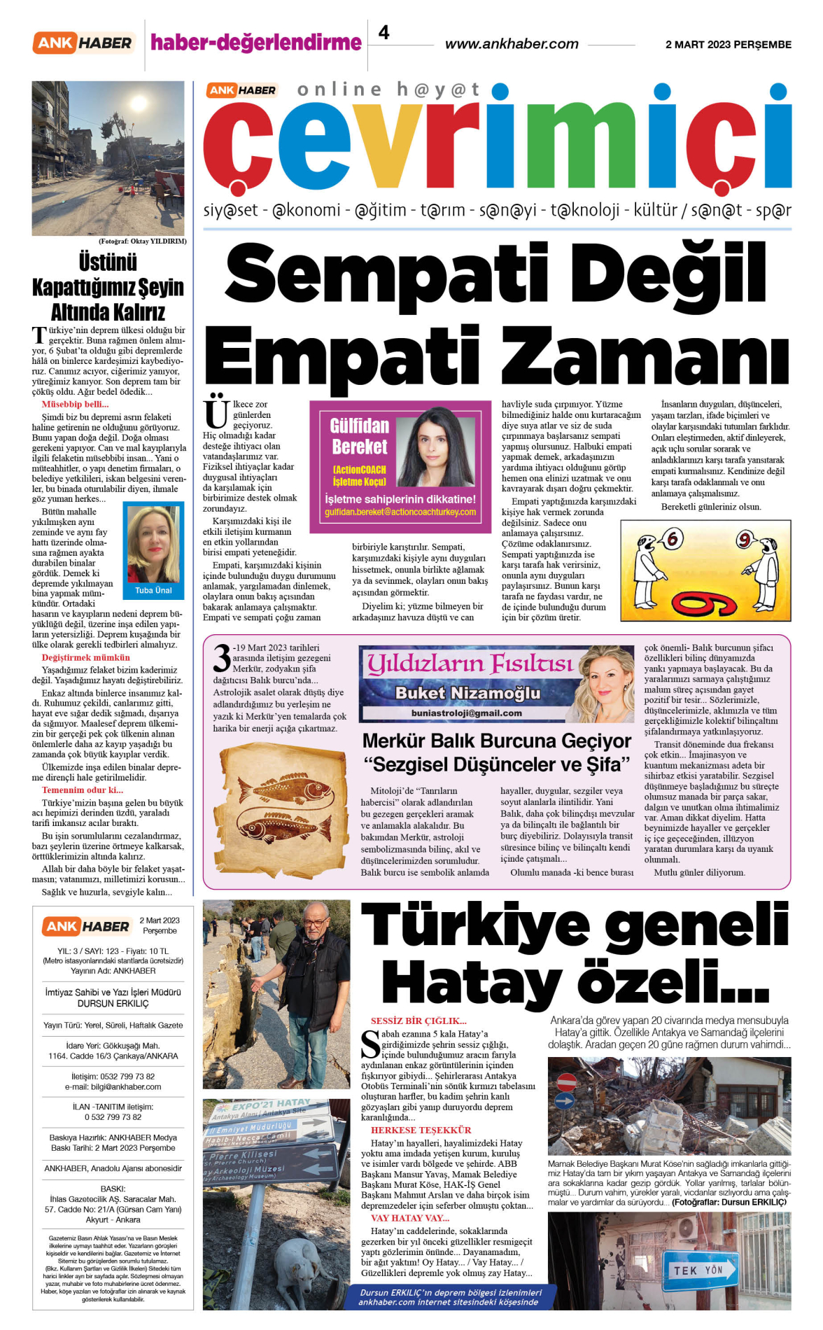 Basılı dağıtımı PTT aracılığıyla yapılan ANKHABER Gazetesi’nin 49. sayısı internet sitesinde dijital olarak yayında…