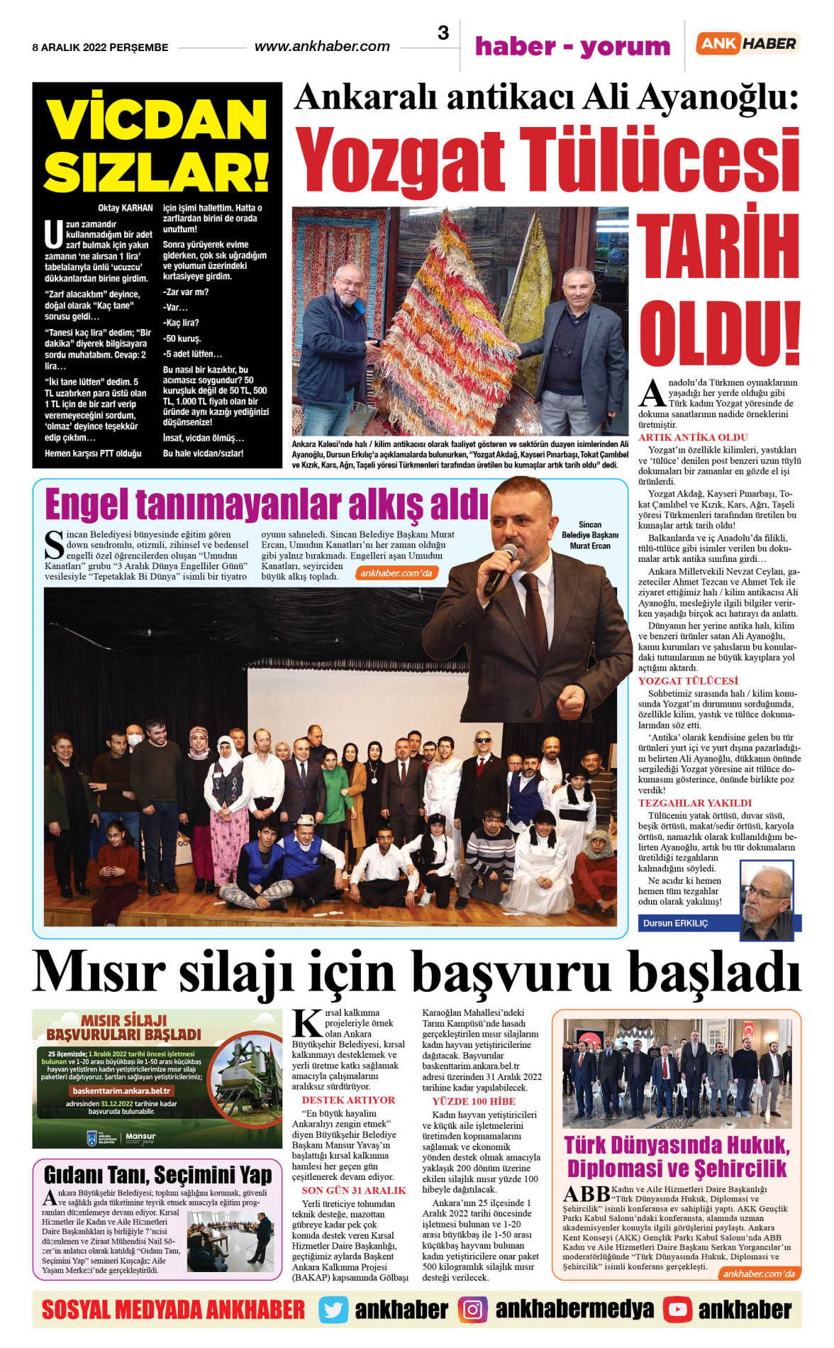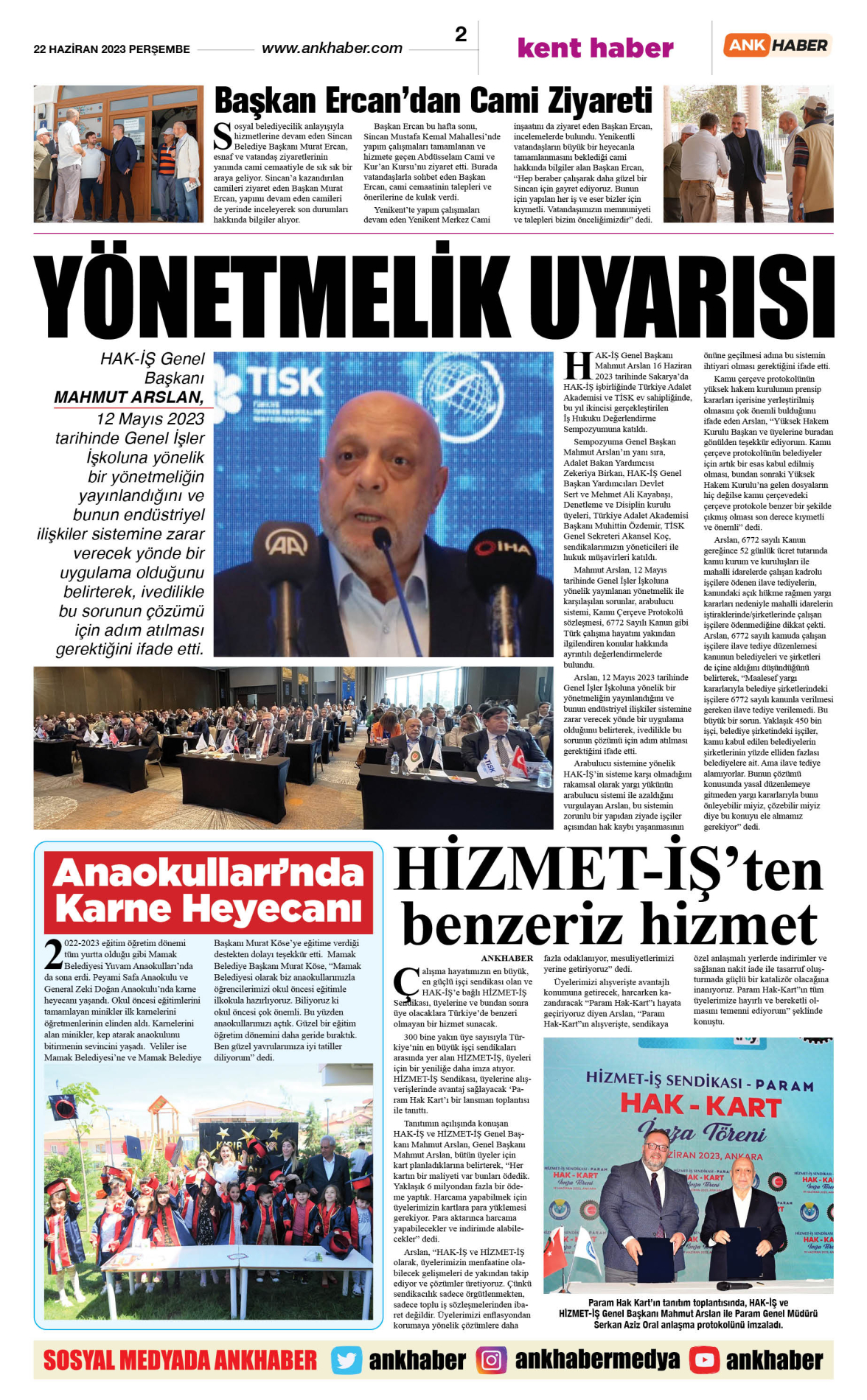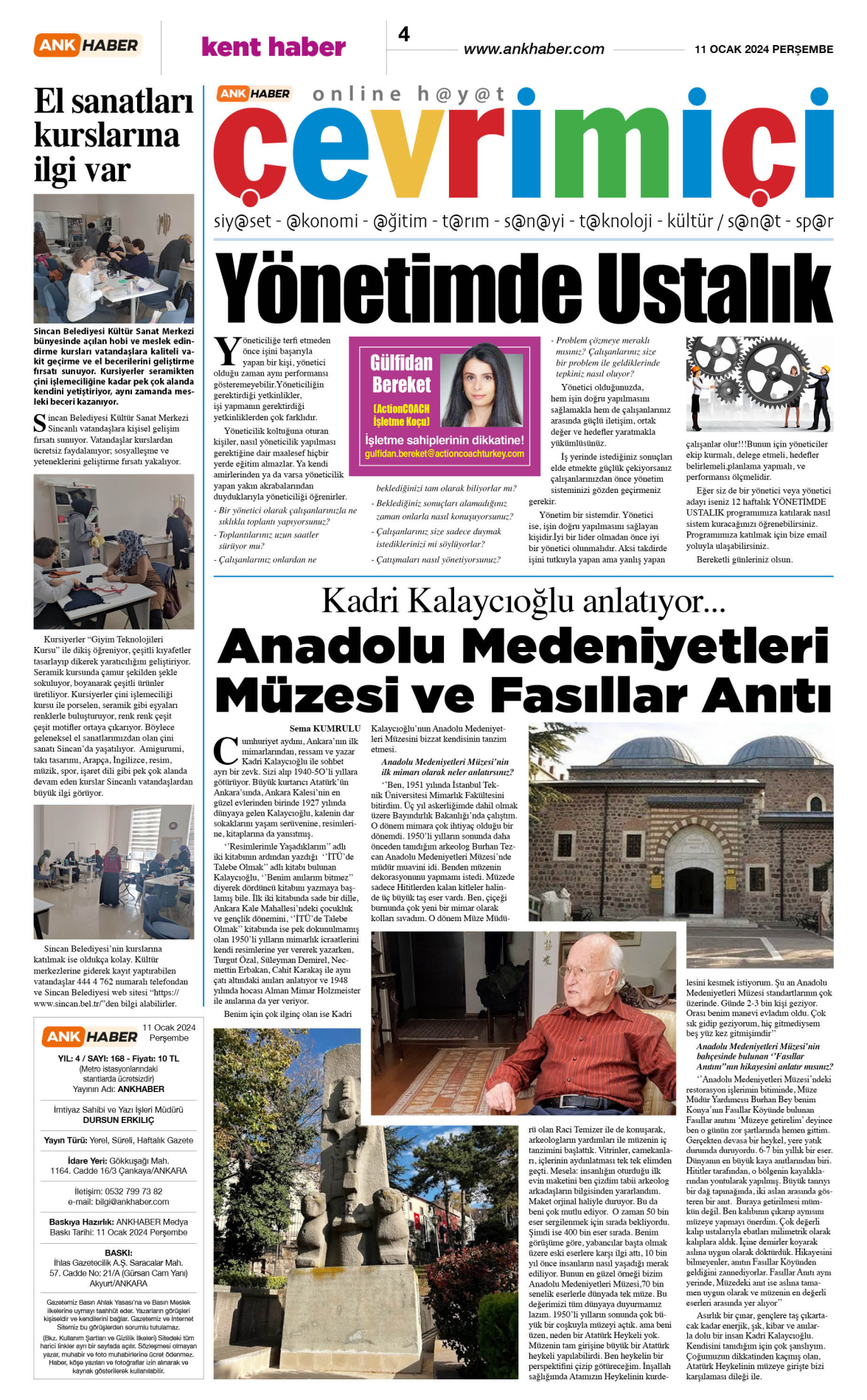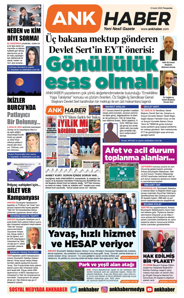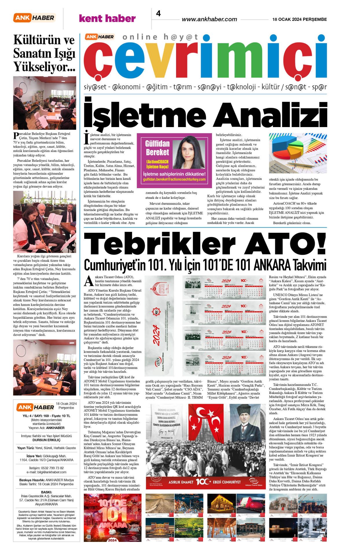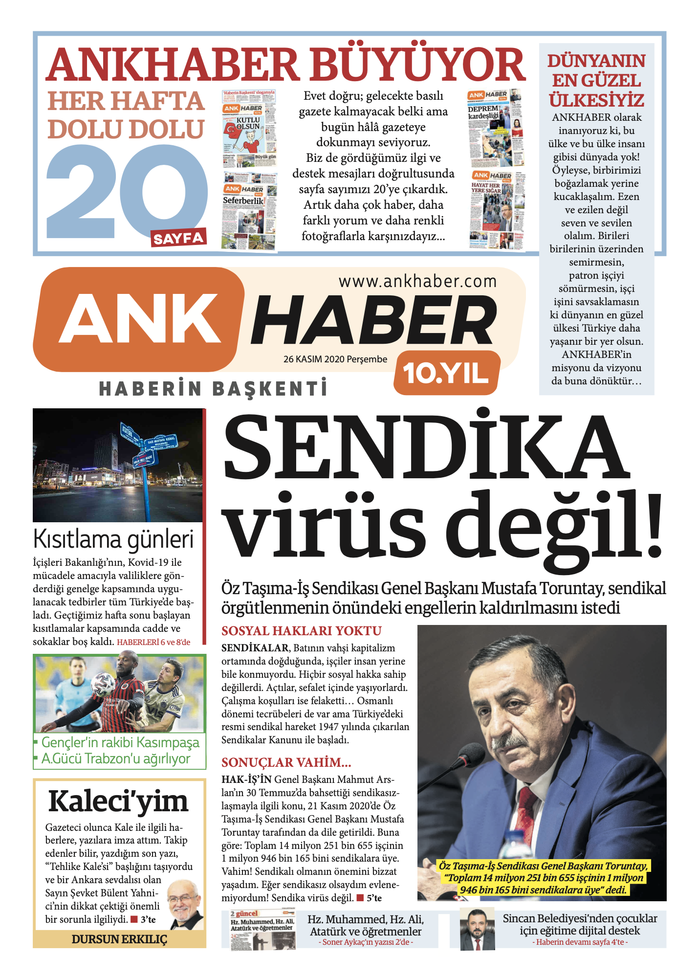 Basılı dağıtımı PTT aracılığıyla yapılan ANKHABER Gazetesi, 51. sayısıyla dijitalde de yayında.