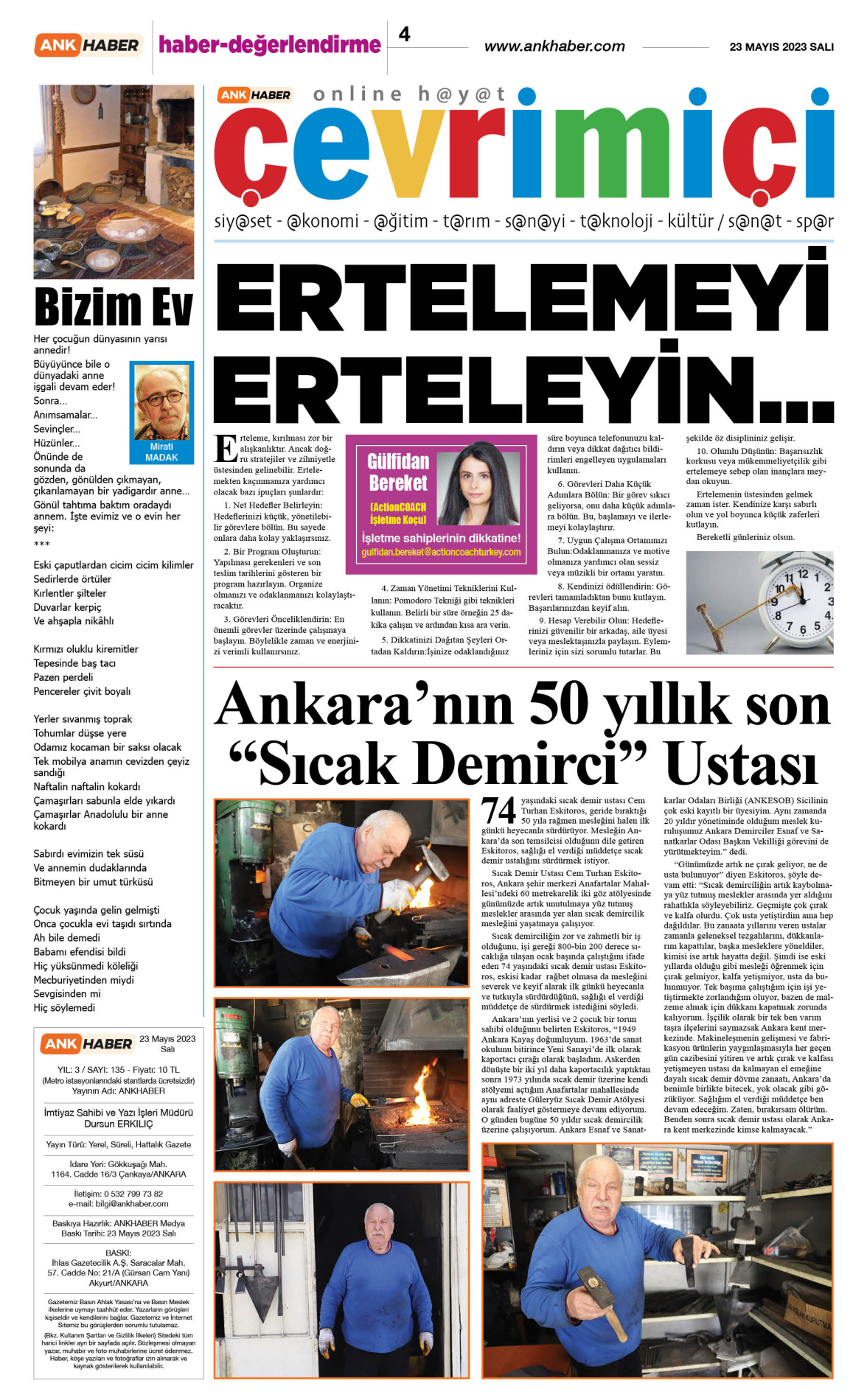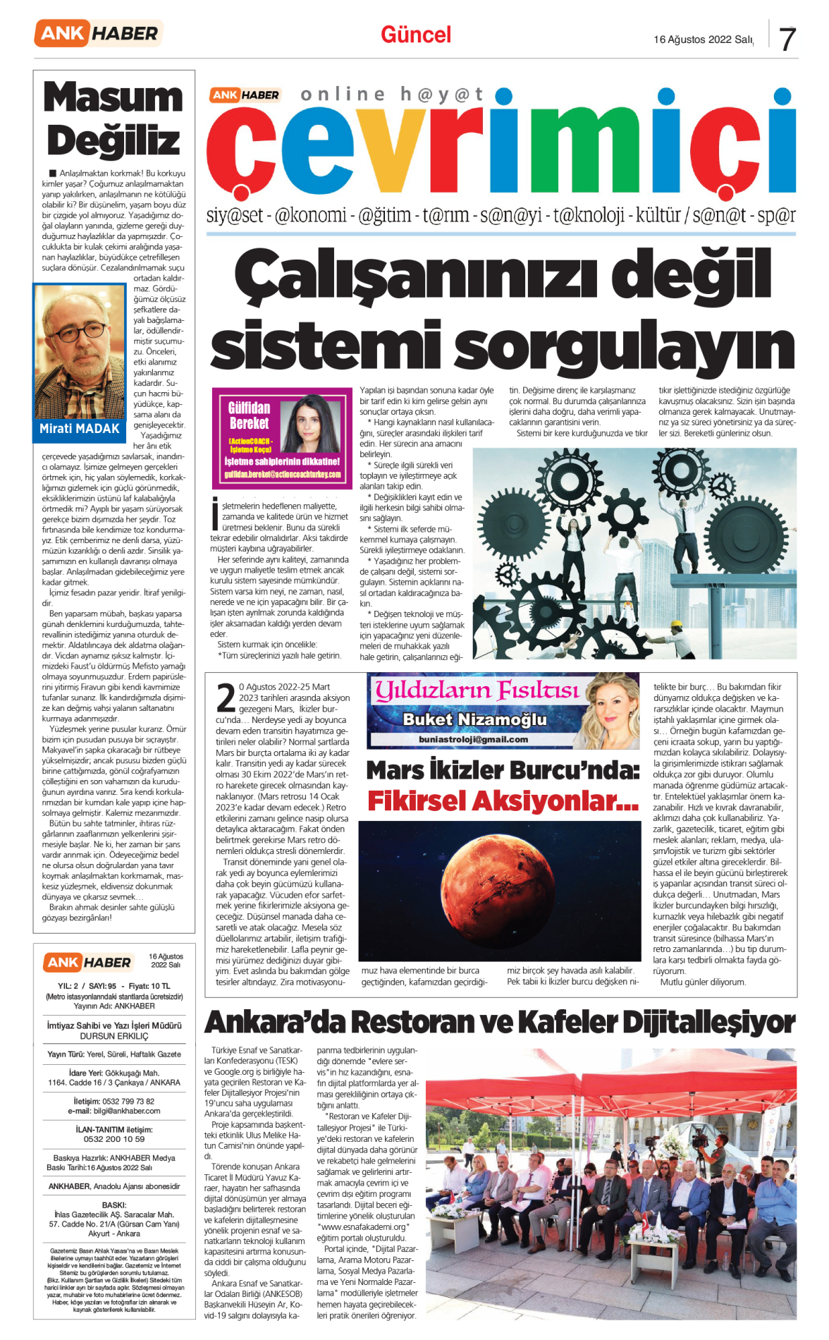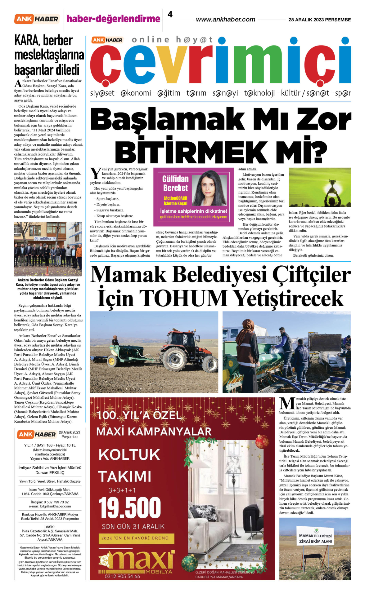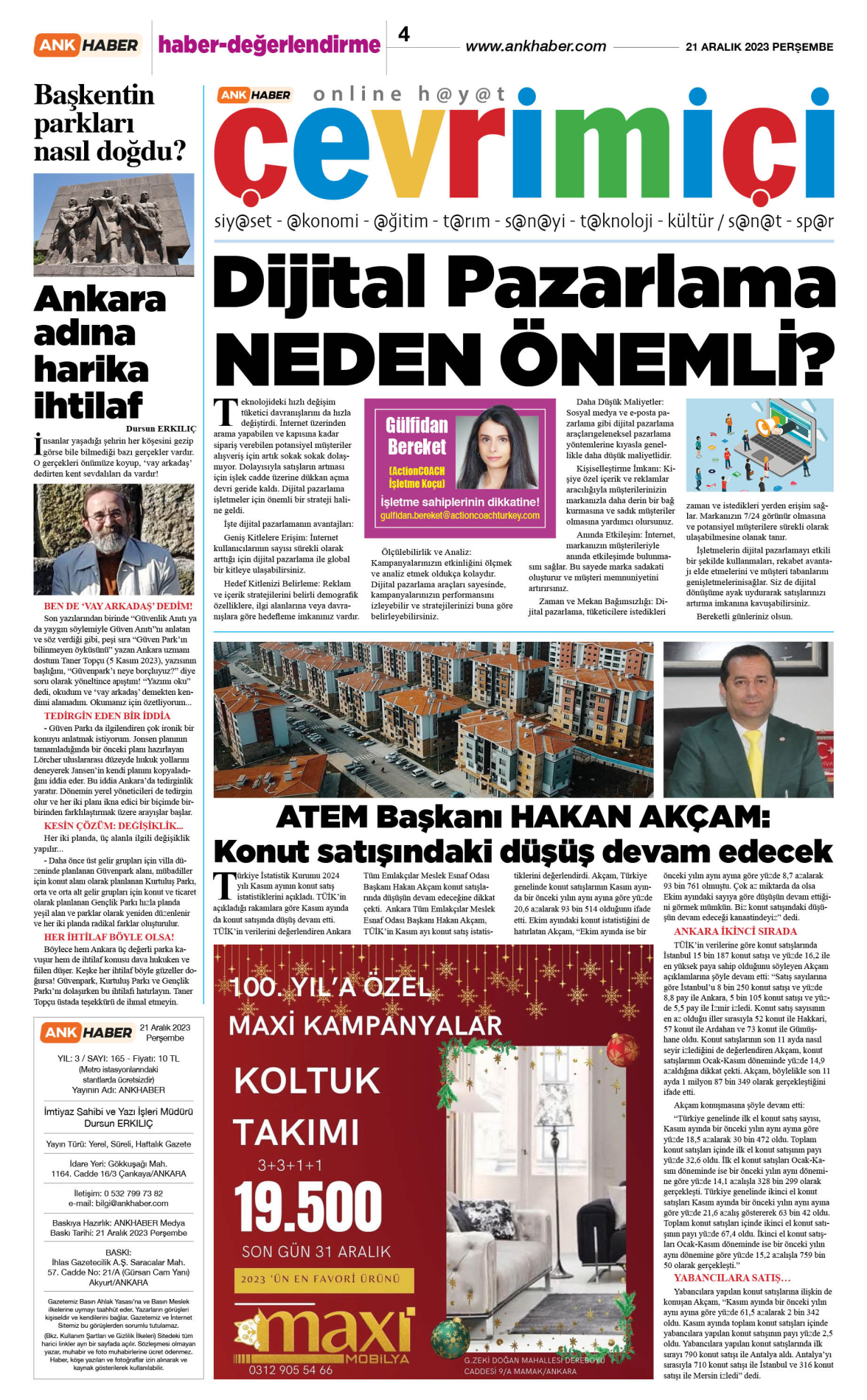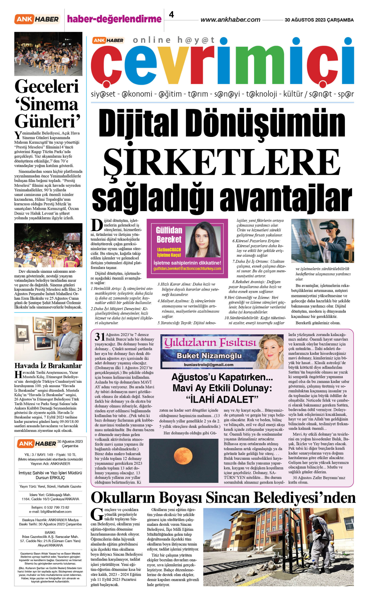 Basılı dağıtımı PTT aracılığıyla yapılan ANKHABER Gazetesi, 51. sayısıyla dijitalde de yayında.