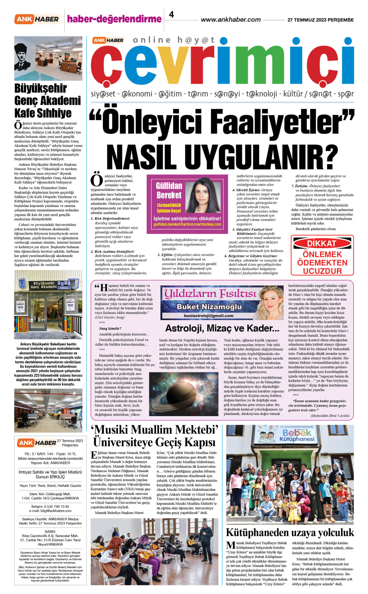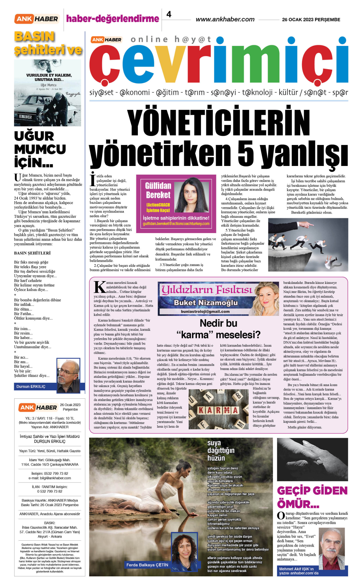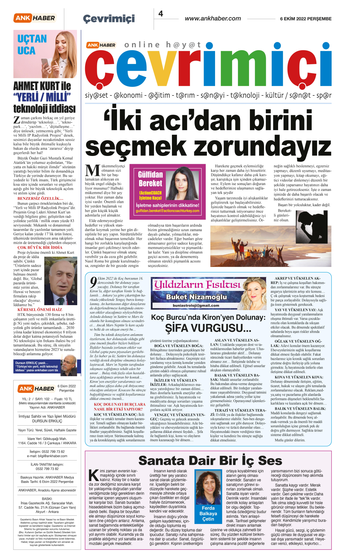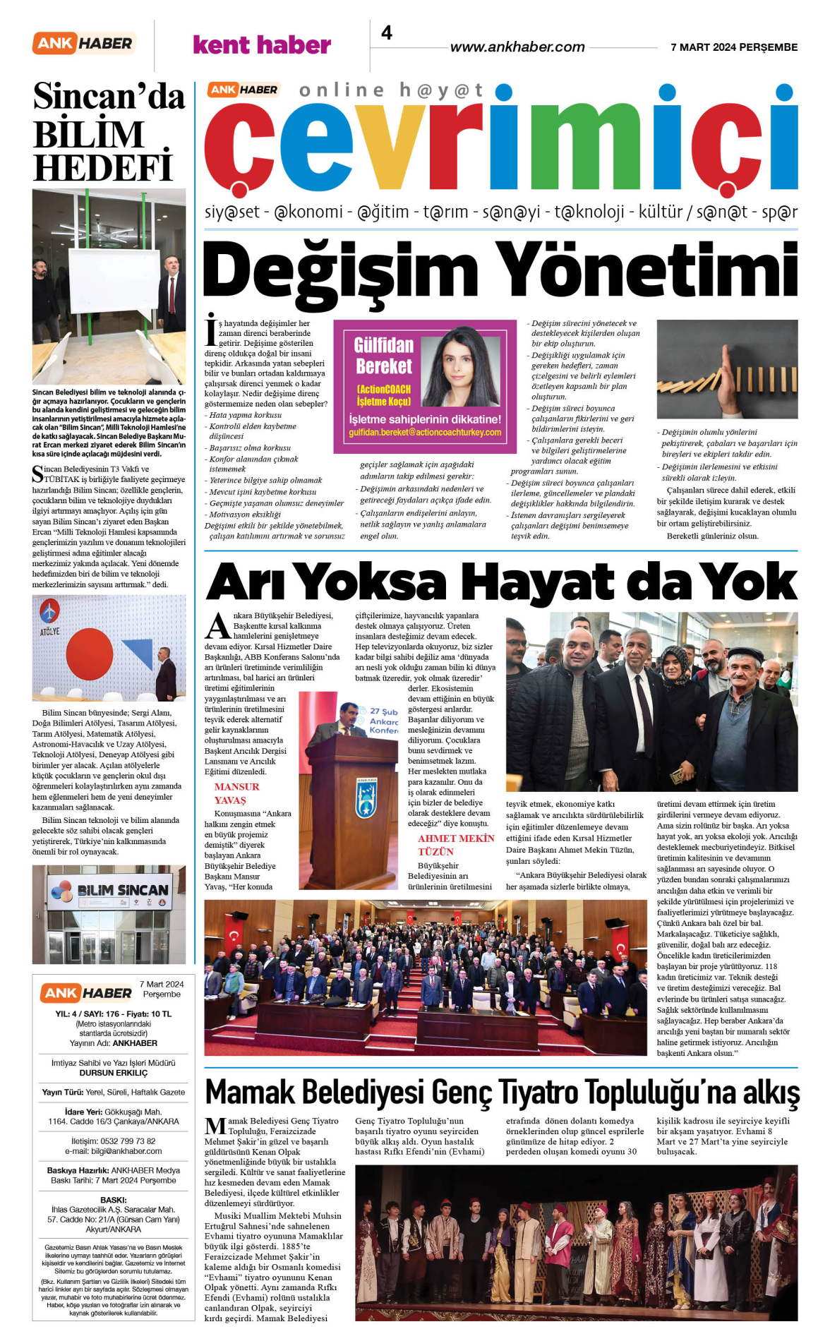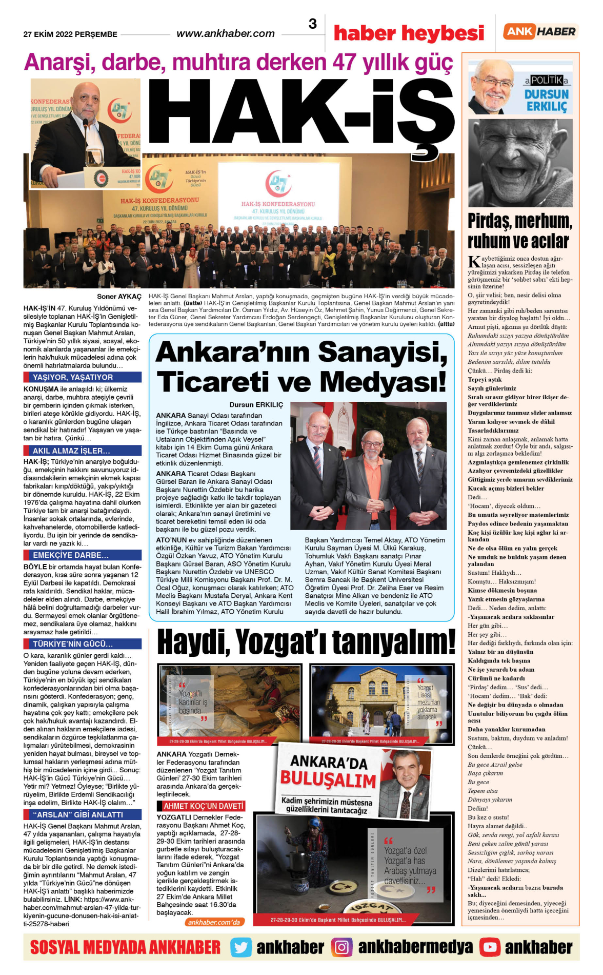 Basılı dağıtımı PTT aracılığıyla yapılan ANKHABER Gazetesi, 51. sayısıyla dijitalde de yayında.