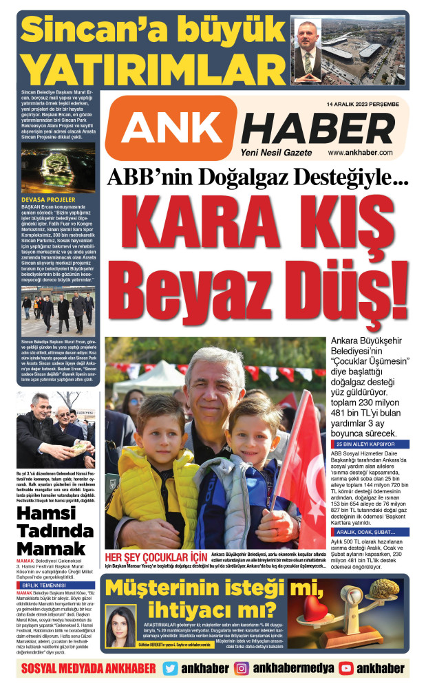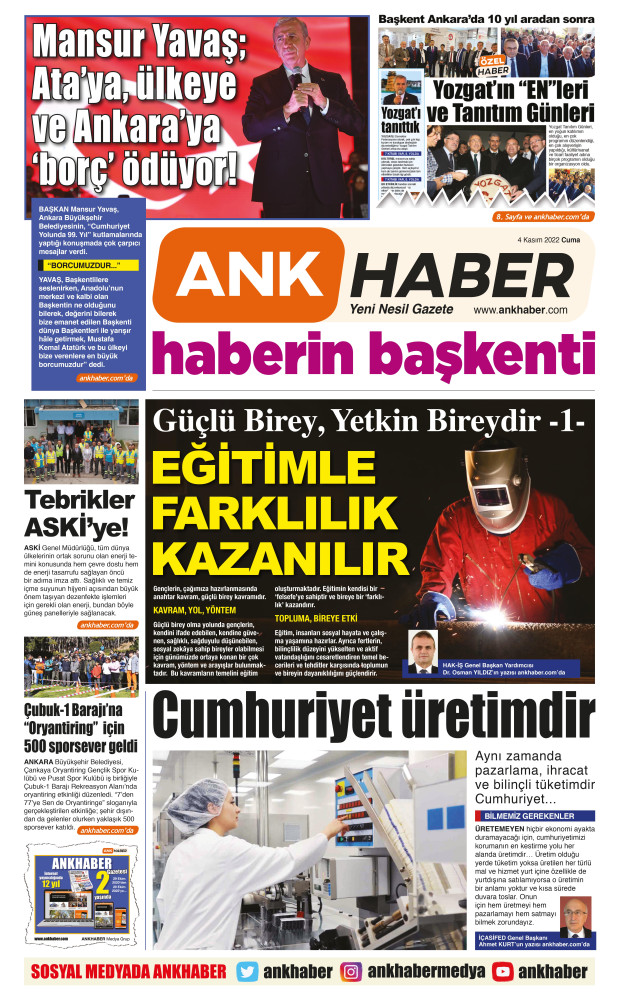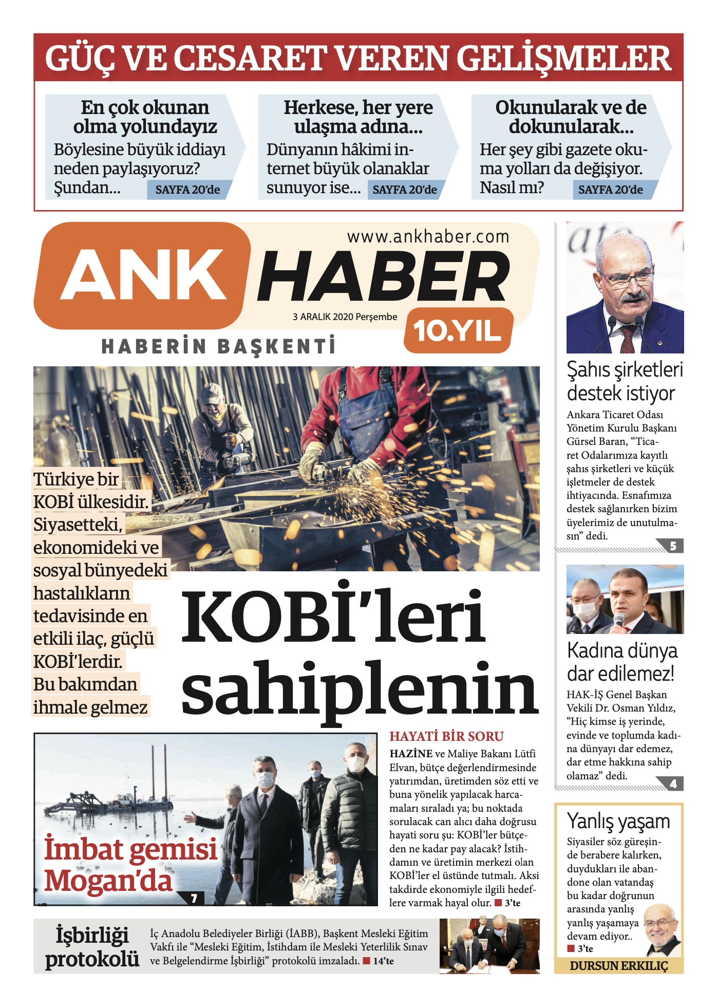 Haberin Başkenti ANKHABER, gazete kağıdına dönen baskısıyla daha fazla insana daha fazla içerik sunuyor.