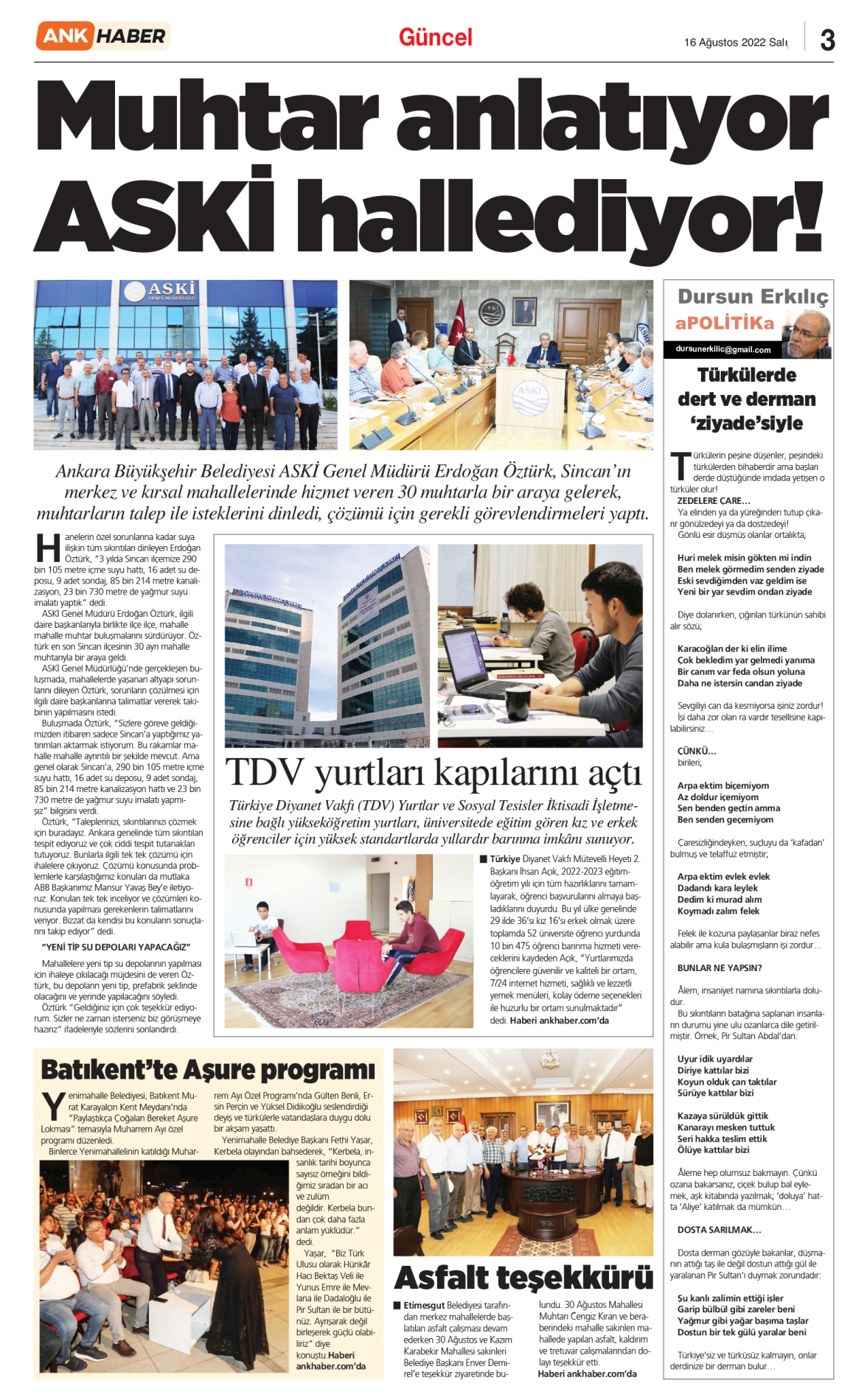 Basılı dağıtımı PTT aracılığıyla yapılan ANKHABER Gazetesi, 50. sayısıyla dijitalde de yayında.