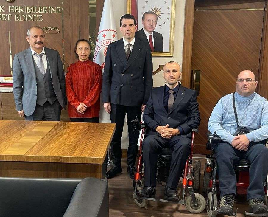 Engelli hakları ve erişilebilirlik sorunlarına çözüm arayışıyla, Engelli Hakları Federasyonu yetkilileri, Ankara İl Sağlık Müdürü Dr. Ali Niyazi Kurtcebe'yi ziyaret etti.
