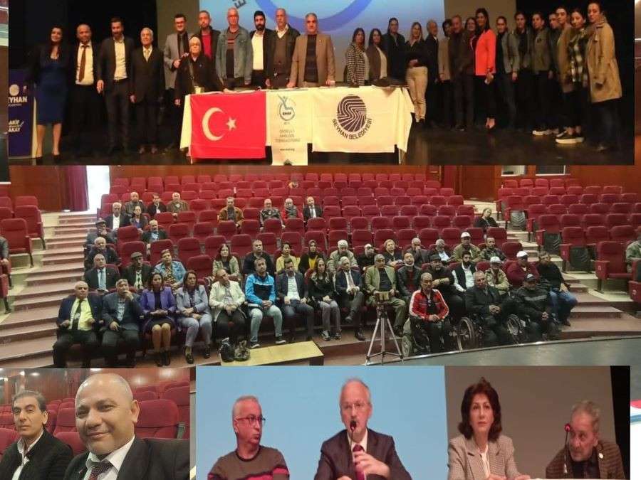 Adana’da Dünya Sakatlar Derneği Başkanı Halis Kassap’ın öncülüğünde, Adana Seyhan Belediyesi Yaşar Kemal Kültür Merkezi Salonunda düzenlenen çalıştaya Engelli Hakları Federasyonu Başkanı Cemalettin Gürsoy ile Engelli Hakları Federasyonu Sosyal İşlerden Sorumlu Başkan Yardımcısı ve Yıldırım Beyazıt Dışkapı Eğitim Araştırma Hastanesi Engelli Danışma Merkezi Sorumlusu Ali Daştan da katıldı.