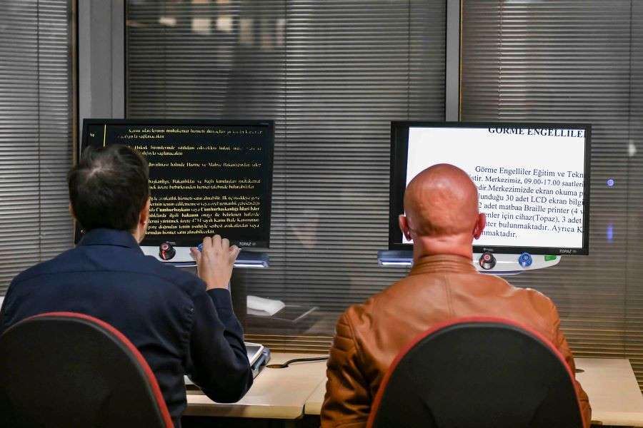Görme engelli bireylerin kendilerine özel program yüklü bilgisayarlarda araştırma yapabilmeleri ve Braille Alfabesi (kabartma yazı) ile bilgiye kolaylıkla ulaşabilmelerine imkân sağlamak amacıyla kurulan merkeze görme engelli vatandaşlar da yoğun ilgi gösteriyor.