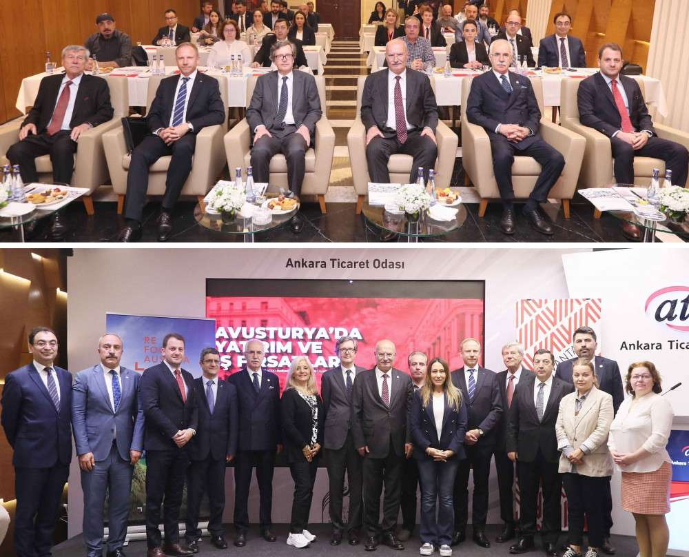Ankara Ticaret Odası ve Avusturya Ticaret Ataşeliği iş birliğinde düzenlenen“Avusturya’da Yatırım ve İş Fırsatları Toplantısı”, ATO Başkanı Gürsel Baran ve Avusturya’nın Ankara Büyükelçisi Dr. Johannes Wimmer’in katılımıyla ATO Duatepe Hizmet Binası’nda yapıldı.