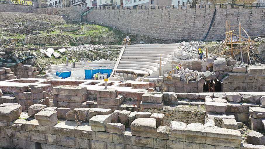 Ankara Büyükşehir Belediyesi, Başkent’in en önemli tarihi eserlerinden biri olan Roma Tiyatrosu’nda başlattığı restorasyon çalışmalarında büyük oranda ilerleme sağladı. Özgün dokusu korunarak oturma basamaklarının yerleştirildiği ve yüzde 70’i tamamlanan çalışmalar hassasiyetle sürdürülüyor.