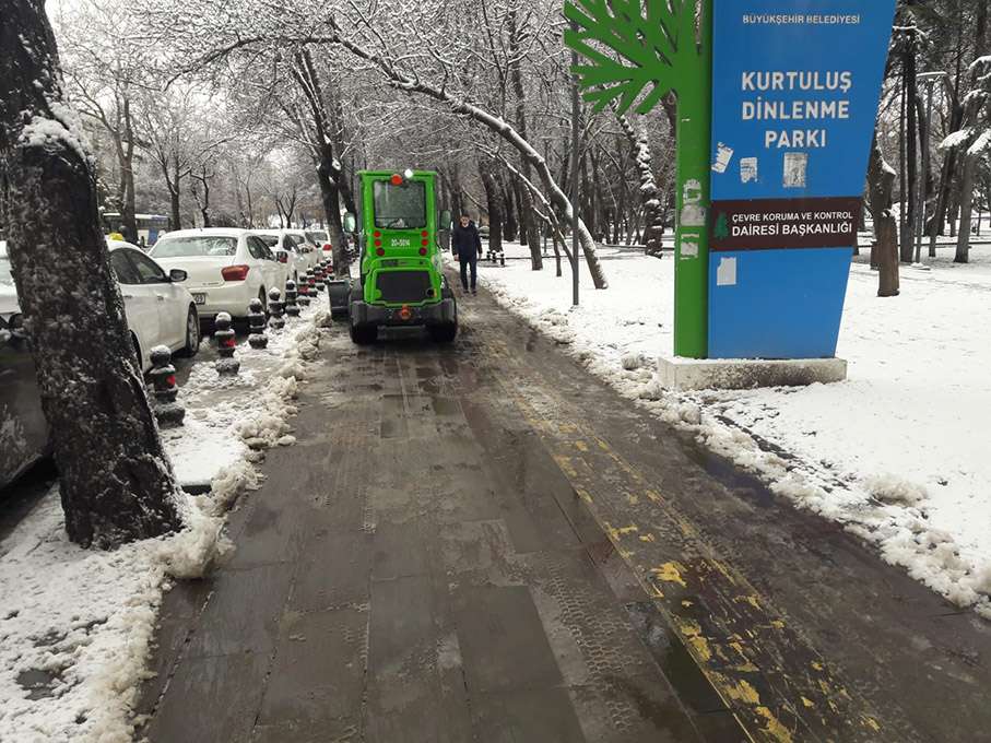 Kar yağışının ulaşıma ve gündelik hayata olumsuz etkilerine karşı harekete geçen Büyükşehir ekipleri 25 ilçede öncelikli olarak hastane önleri, ana arterler ve kaldırımlarda kar küreme ve tuzlama çalışmalarına başladı. Yapılan yoğun çalışmalar sonucunda Başkent’in tüm caddeleri ve bulvarlarında yollar açık kaldı.