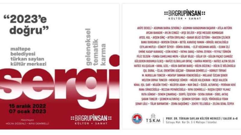 İstanbul Maltepe Belediyesi Prof. Dr. Türkan Saylan Kültür Merkezi'inde 2022'ye veda ederken hazırlanan ''Bir Grup İnsan'' isimli Kültür Sanat platformunun ''2023'e Doğru'' isimli karma resim sergisine kapılarını açtı.