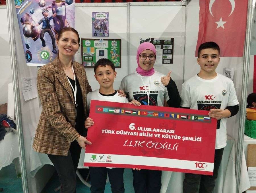 Bu yıl 20-22 Kasım tarihlerinde, 6'ncısı düzenlenen Uluslararası Türk Dünyası Bilim ve Kültür Şenliği, Mamak Belediyesi Hidayet Türkoğlu Spor Salonunda gerçekleştirildi. Şenlik çerçevesinde düzenlenen bilimsel proje yarışmasına, Ankara Altındağ Hacıbayram Ortaokulu’ndan Dijital Tayfa/Doğacılar proje ekibinden öğrenciler Nesligül Karaoğulları, Osman Eymen Karaoğulları, Kayra Gün ve danışman öğretmenleri Çiğdem Altıkat “Meta Dönüşüm” projesi ile Altındağ’ı temsil ederek Çevre ve Sağlık Kategorisinde Birincilik Ödülünü kazandı.