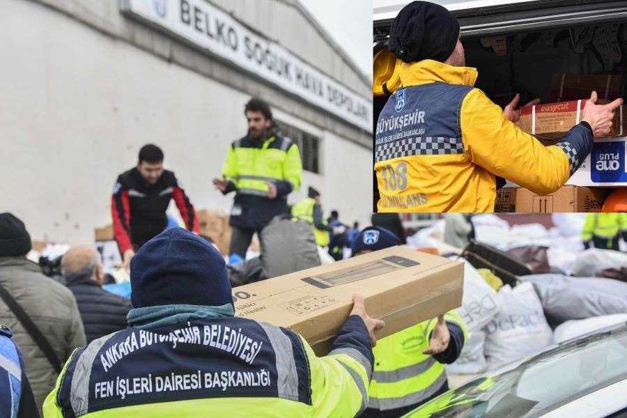 Ekipler depremin ilk gününde çalışmalara destek vermeye başlarken, Başkentli vatandaşların Ankara’dan deprem bölgesine kurduğu gönül köprüsü sayesinde acil yardım malzemelerini taşıyan TIR’lar da bölgeye ulaşmaya başladı.