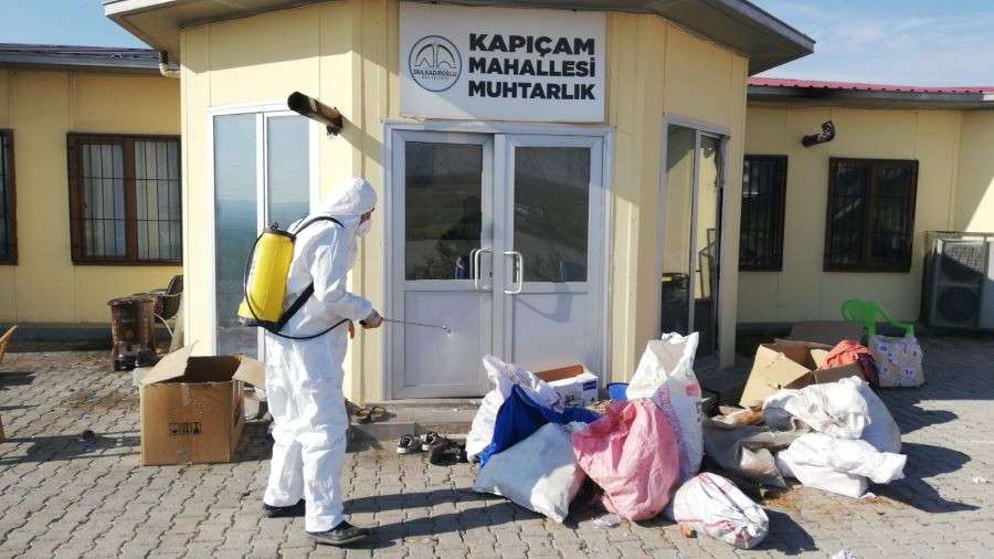 ANKARA BÜYÜKŞEHİR BELEDİYESİNİN DEPREM BÖLGESİNDE İLAÇLAMA ÇALIŞMALARI DEVAM EDİYOR