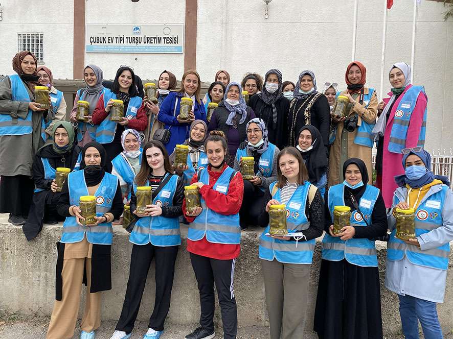 Ankara'da yaşayan ve proje kapsamında geleneksel üretime ilişkin eğitimler alan 19-24 yaş arası 30 genç kız, dünyaca ünlü coğrafi işaret belgesine sahip Çubuk turşusu üretim atölyelerini ziyaret etti.