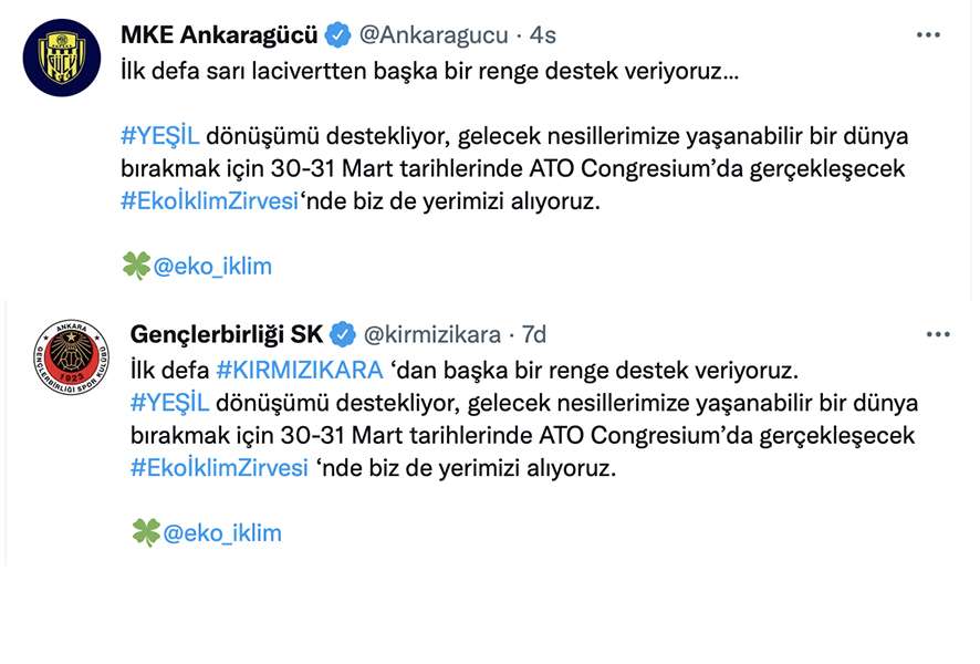 MKE Ankaragücü ve Gençlerbirliği, resmi hesaplarından EKO İKLİM Zirvesi için paylaşımda bulundu.