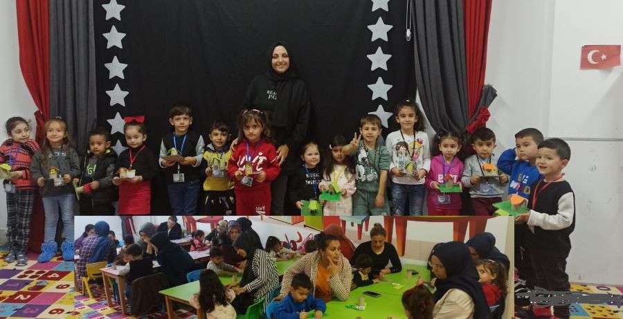 3-6 yaş arası çocuklar ve anneleri için faaliyet gösteren Anne-Çocuk Oyun evlerinde gerçekleştirilen geri dönüşüm oyunuyla çocuklara eğlenirken çevre bilinci kazandırmak amaçlanıyor. Çocuklar rulo kağıtlardan yaptıkları dağ evleriyle daha sonra hatıra fotoğrafı çektirdi.