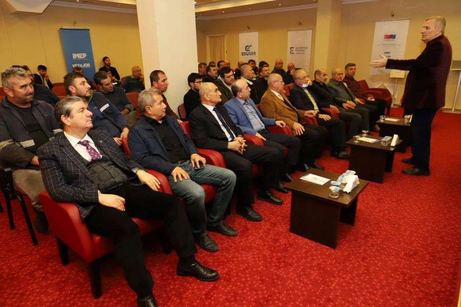 Beypazarı Ticaret Odası Toplantı Salonu'nda ANKESOB Başkan Vekili Hüseyin Ar'ın da katıldığı ve ANKESOB Eğitim, Proje ve Ar-Ge Müdürü Erdoğan Özen ile İMEP Ankara İl Koordinatörü Aydın Türkoğlu'nun da hazır bulunduğu, Beypazarı Demirciler Sobacılar ve Oto Sanatkarları Esnaf ve Sanatkarlar Odası'nın otomotiv ve oto elektrik üzerine faaliyet gösteren üyelerinin yoğun ilgi gösterdiği seminer programına, Beypazarı Demirciler Sobacılar ve Oto Sanatkarları Esnaf ve Sanatkarlar Odası Başkanı Fazlı Yiğit'in yanı sıra, Beypazarı Bakkallar ve Bayiler Esnaf Odası Başkanı Ömer Koçer, Beypazarı Berberler ve Kuaförler Esnaf ve Sanatkarlar Odası Başkanı Doğan Sayıl, Beypazarı Terziler Esnaf ve Sanatkarlar Odası Başkanı Fahri Arslan, Beypazarı Esnaf ve Sanatkarlar Kredi Kefalet Kooperatifi Başkanı Ahmet Yünsel de katıldı.