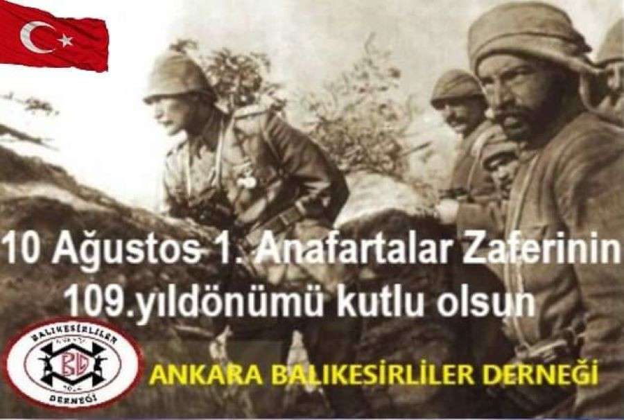 ANKHABER / Ankara Balıkesirliler Derneği Başkanı Servet Camgöz, Anafartalar Zaferinin 109. yıl dönümü dolayısıyla yaptığı paylaşımda, 10 Ağustos’u ‘çok özel bir gün’ olarak nitelendirdi.