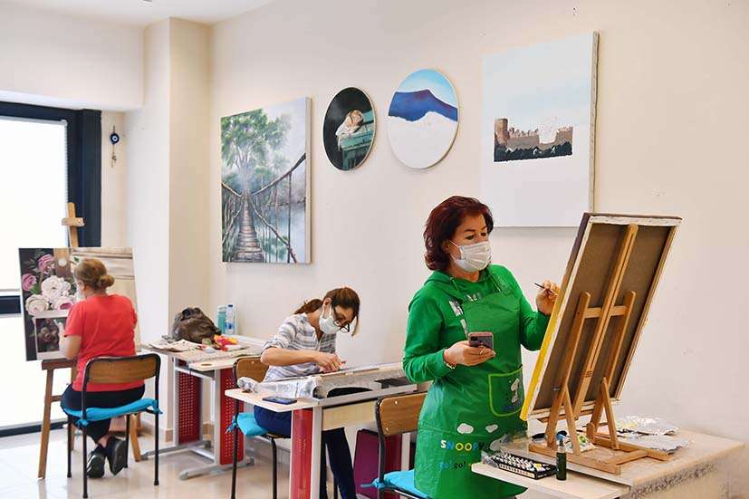 Resim kursuna 3 yıldır devam ettiğini söyleyen Serap Karaduman düşüncelerini, “BELMEK kursları çok güzel, bizler için çok iyi çok faydalı oluyor. Bir şeyler ortaya çıkarmak çok güzel. Karakalem ile başladım şimdi kuru kaleme geçtim. Sulu boya, pastel ve yağlı boyaya kadar geçeceğiz. Evde oturup kendimizi dinlemektense hem dertleri atma fırsatı buluyoruz hem de iş fırsatı da elde ediyoruz” sözleriyle dile getirirken, BELMEK kurslarında aldıkları eğitim sayesinde güzel eserler ortaya çıkardıklarını ifade eden Fatma Ertekin ise şöyle konuştu: