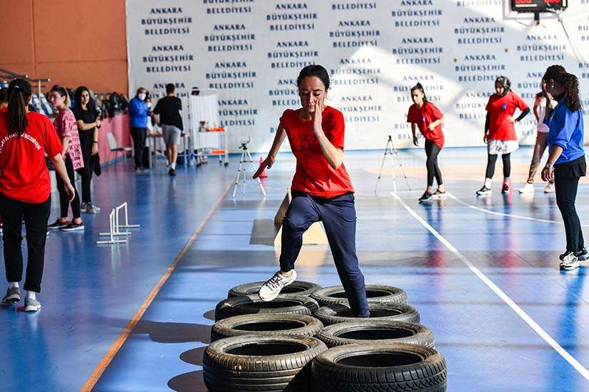 Kursiyerler, alanında uzman eğitmenler ve sağlık personeli eşliğinde Sincan Aile Yaşam Merkezi Kapalı Spor Salonu ile Atatürk Kapalı Spor Salonu’nda sınavlara hazırlanıyor.