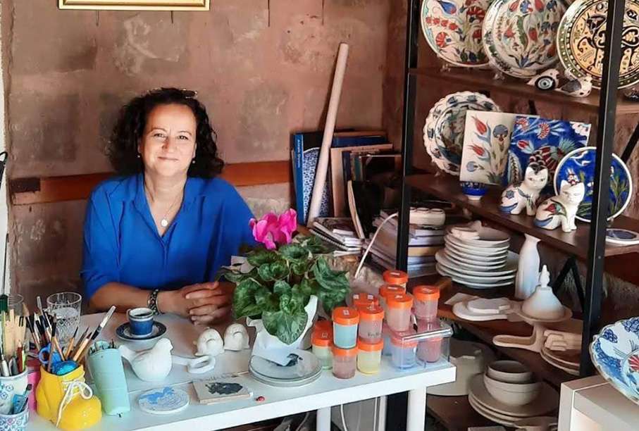 Çini sanatçısı Dilek Söylen yeni atölyesinde