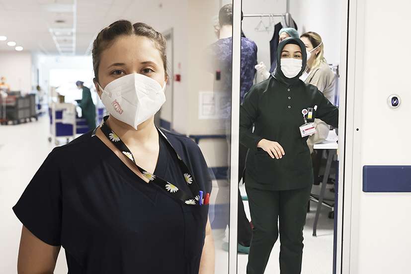 Girişimsel Radyoloji bölümünde çalışan iki çocuk annesi hemşire Tuğba Akan da salgın döneminin başında 2 yaşındaki kızını farklı bir şehre göndermek zorunda kalan ve dört ay hiç görüşemeyen arkadaşının yaşadıklarından çok etkilendiğini, bu tür durumlarda sağlık çalışanları olarak birbirlerine destek olmaya çalıştıklarını anlattı.