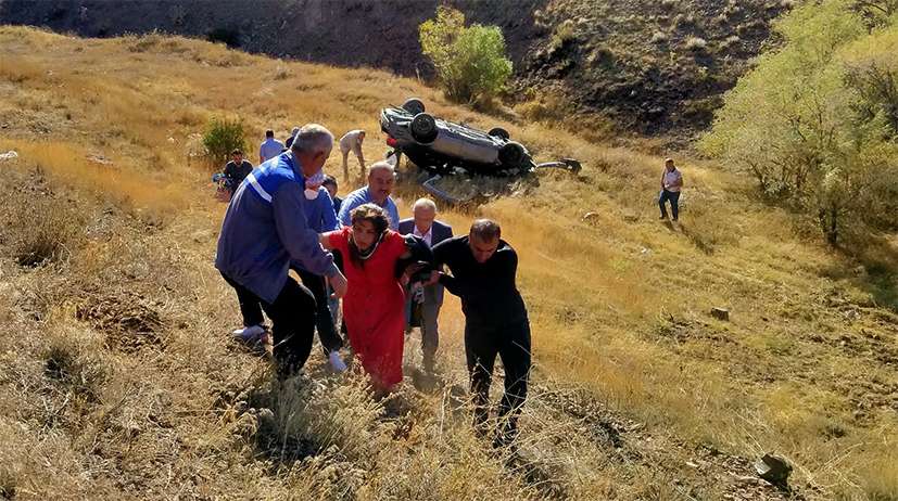 Devrilen otomobildeki 2 öğretmen yaralandı