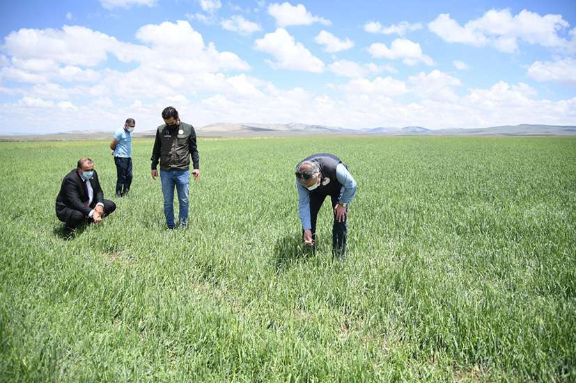 İl Müdürü Mustafa Şahin, doludan zarar gören arazilerde incelemelerde bulundu.