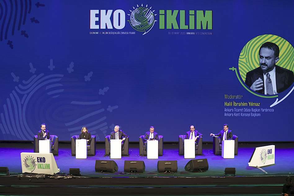 İklim değişikliğiyle mücadele ve yeşil dönüşüm konularında farkındalık oluşturmak amacıyla Ankara Ticaret Odası (ATO) öncülüğünde ve çok sayıda kurum ve kuruluşun paydaşlığında gerçekleştirilen “EKO İKLİM Ekonomi ve İklim Değişikliği Zirvesi/Fuarı” önemli bir oturuma ev sahipliği yaptı. İklim değişikliğiyle mücadele konusunda atılacak ilk adımın yerel yönetimlerden başlaması gerektiği bilinciyleTürkiye Belediyeler Birliği Başkanı ve Gaziantep Büyükşehir Belediye Başkanı Fatma Şahin, Ankara Büyükşehir Belediye Başkanı Mansur Yavaş, Konya Büyükşehir Belediye Başkanı, Dünya Belediyeler Birliği Eş Başkanı ve Türk Dünyası Belediyeler Birliği Başkanı Uğur İbrahim Altay, Hatay Büyükşehir Belediye Başkanı Doç. Dr. Lütfü Savaş ile Balıkesir Büyükşehir Belediye Başkanı Yücel Yılmaz, moderatörlüğünü ATO Yönetim Kurulu Başkanı Yardımcısı ve Ankara Kent Konseyi Başkanı Halil İbrahim Yılmaz’ın yaptığı “Büyükşehirlerde Yeşil Dönüşüm” oturumunda konuştu.