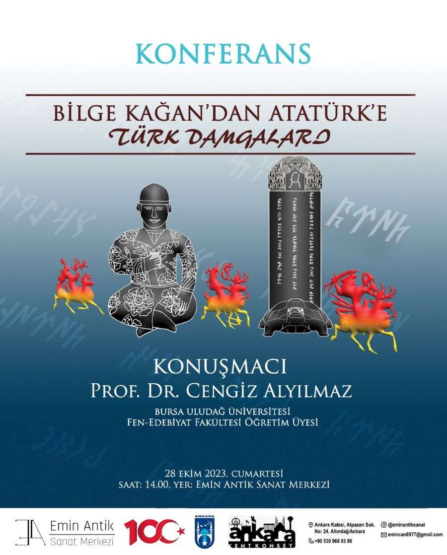 Cumhuriyetin 100.Yılında “Bilge Kağan'dan Atatürk'e Türk Damgaları Konferansı”nda 28 Ekim 2023 Cumartesi saat 14.00’te Emin Antik Sanat Merkezinde sizlerle birlikte olmaktan onur duyarız...